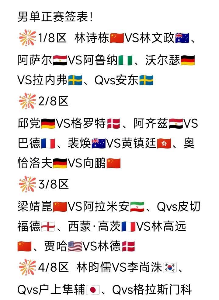 男单签表发布! WTT欧洲大满贯瑞典站男单正赛签表如图所示。