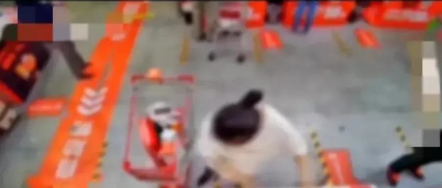 北京丰台,一女子在超市中购物,买了满满一大车东西,到自助付款机结账时,竟然只花了