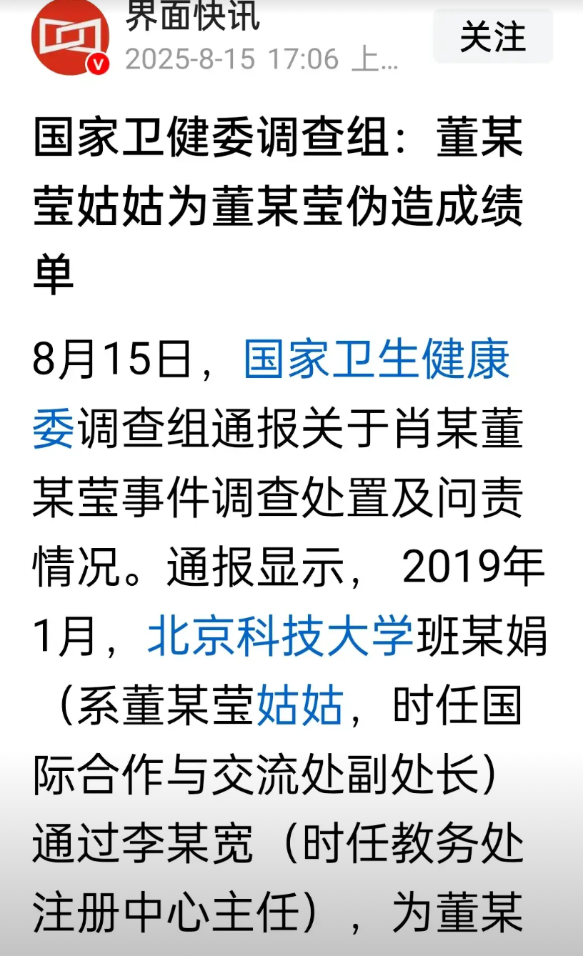 为国家卫健委的追踪深入调查点个赞!本来以为协和董小姐事件已经告一段落,没想到,时隔三个月,国家卫健委将董小姐事件的所有责任人19人全部问责,协和医学院王辰校长也被换成了吉训明,董小姐的博士论文提供方北京科技大学的姑姑也被撤职调离岗位了,中日友好医院的相关领导也被处分,协和4+4项目也进行为期三年整改。