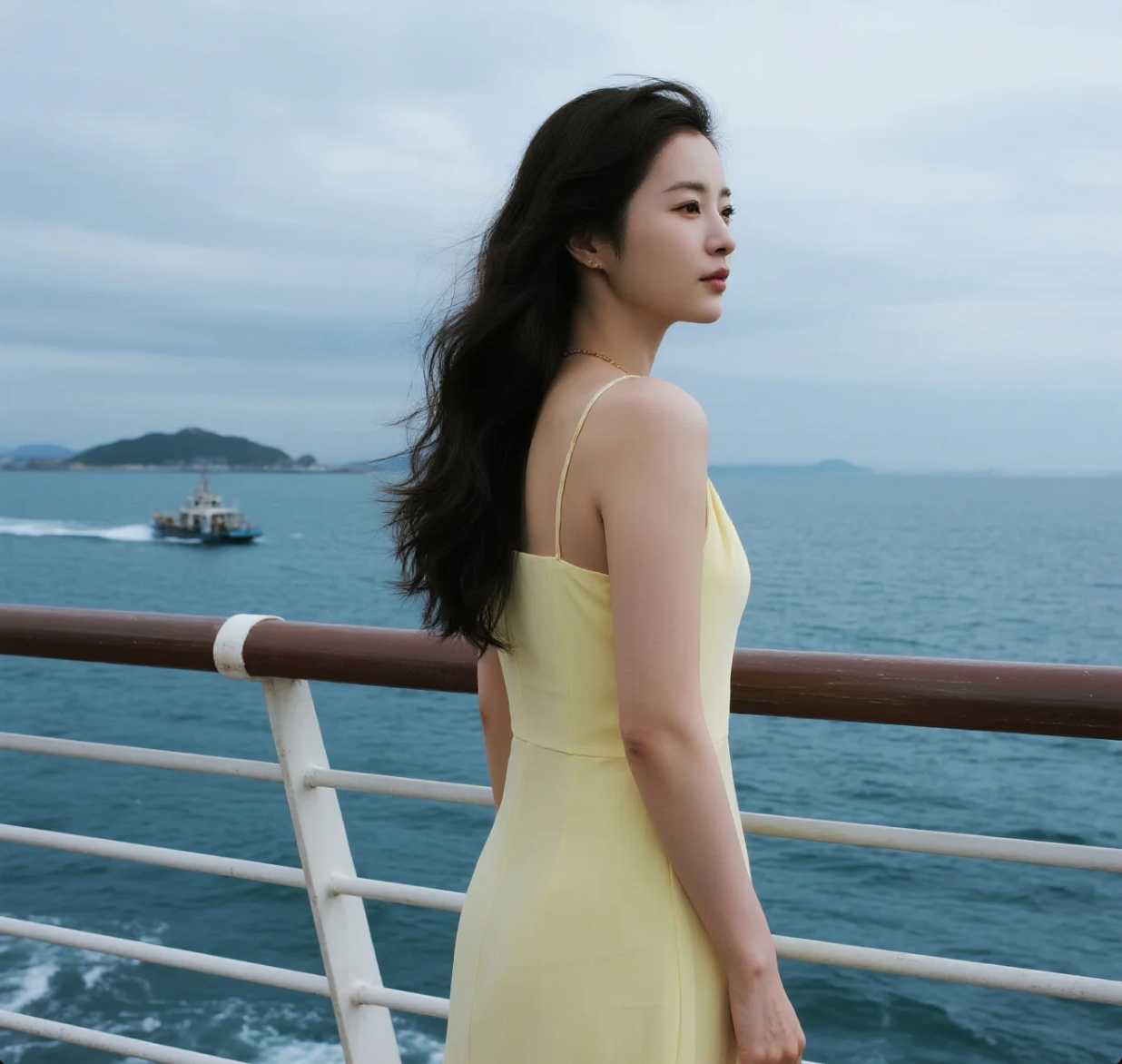 站在游艇甲板上,她的眼里有整片蔚蓝