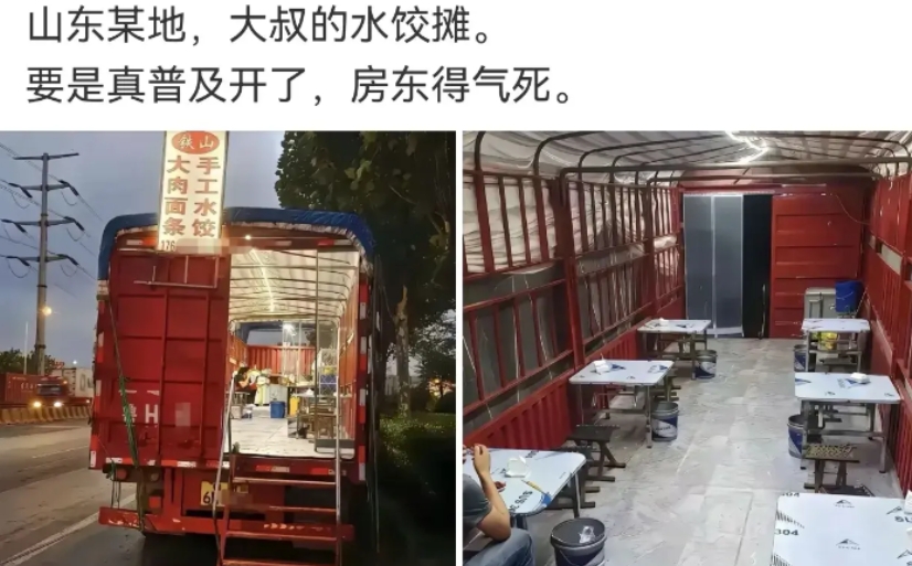 租个店,一年也就几万房租,买个大货车几十万,真划算啊