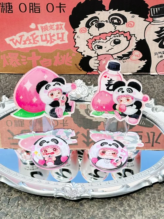 啊啊啊!!元气森林你别太宠我了。。。 居然和WAKUKU联名! [哇R][哇R]周边真的是可爱爆击!! - 谁懂。。已经收到了WAKUKU吧唧还有冰箱贴~ 穿着熊猫装WAKUKU怪可爱的哈哈哈!! 表情好萌!!喝着气泡水抱着粉嘟嘟的桃子 😭重要的是 周边还有公仔!! 毛茸茸的熊猫形象抱着气泡水的瓶子好可爱! 这波我必拿下!! 连气泡水都是用的WAKUKU和爆汁白桃搭配粉嫩的限定包装,绝了~ - 这波联名每一个周边都好好看 姐妹们冲就完事了