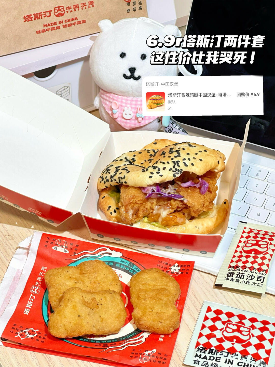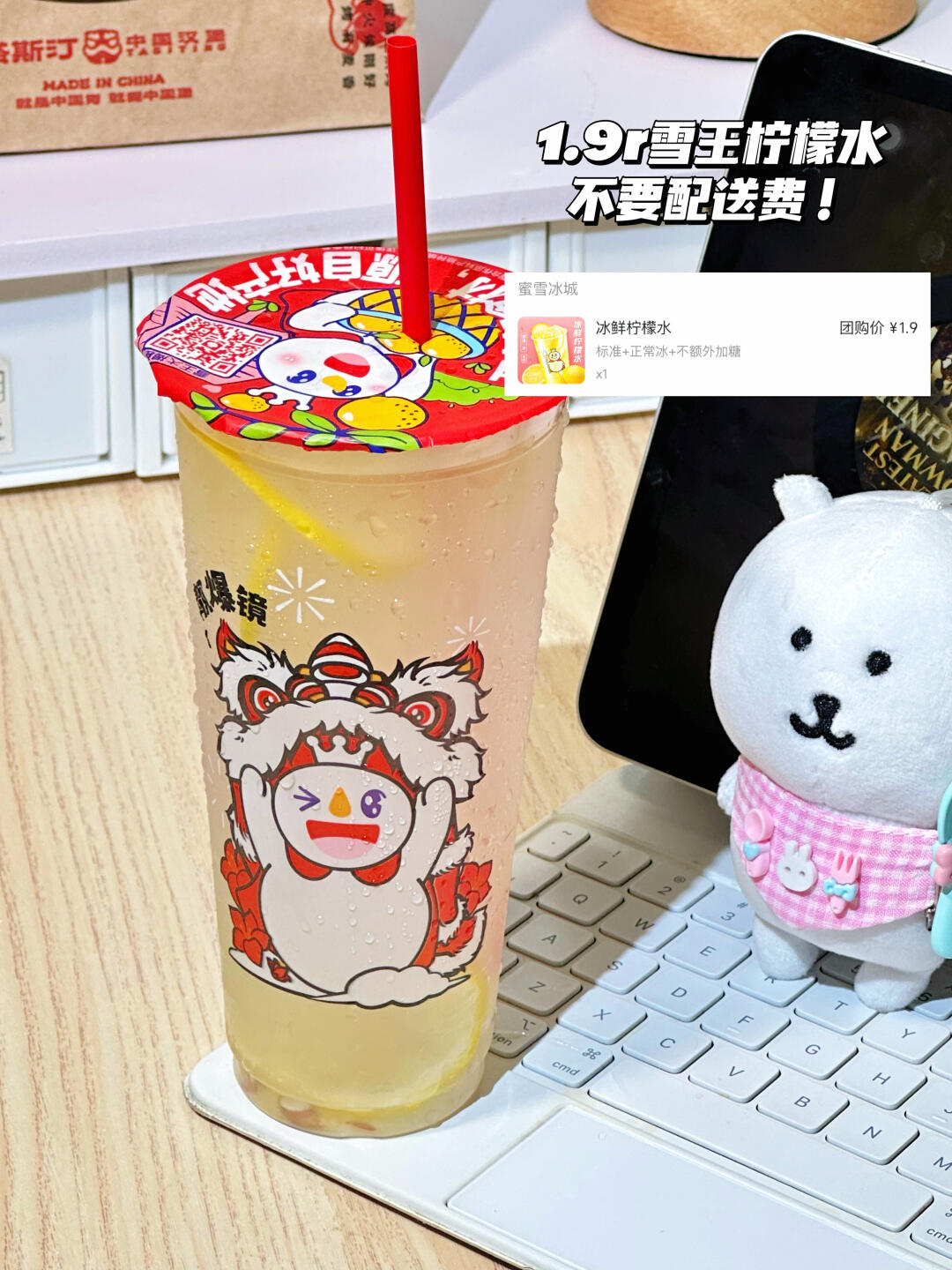 我买了蜜雪冰城柠檬水、塔斯汀套餐