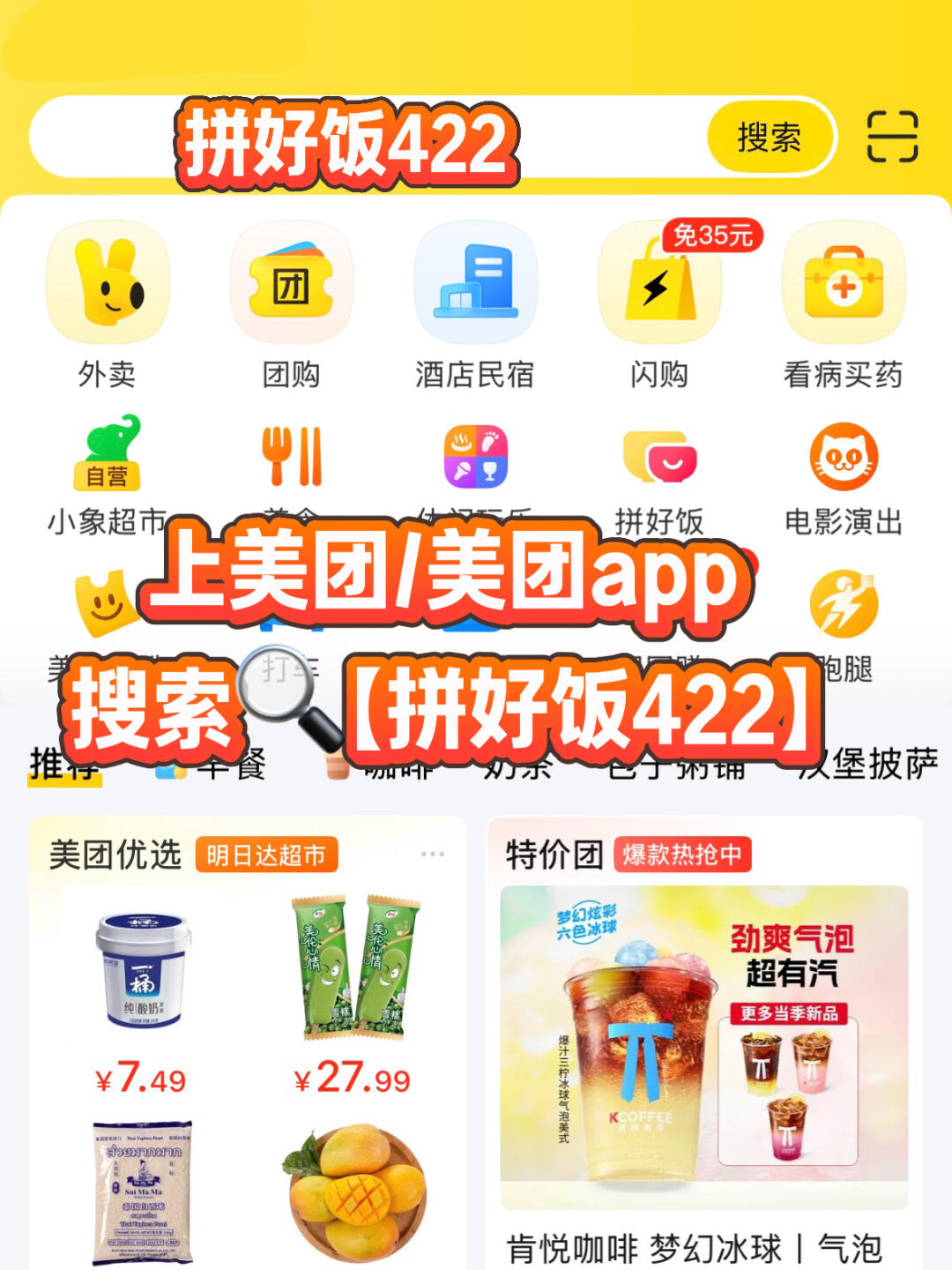 上美团/美团app搜索🔍【拼好饭422】就能get啦