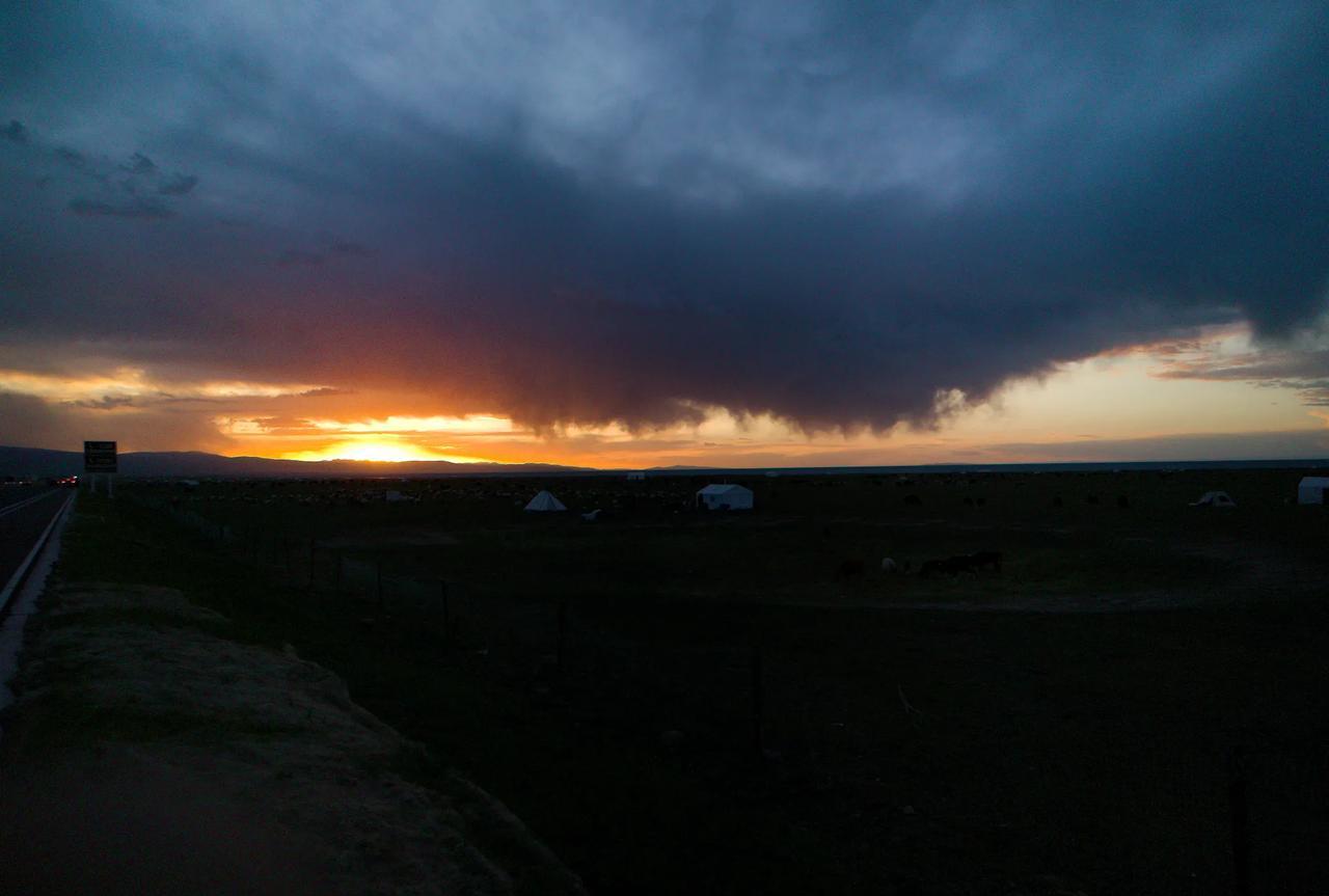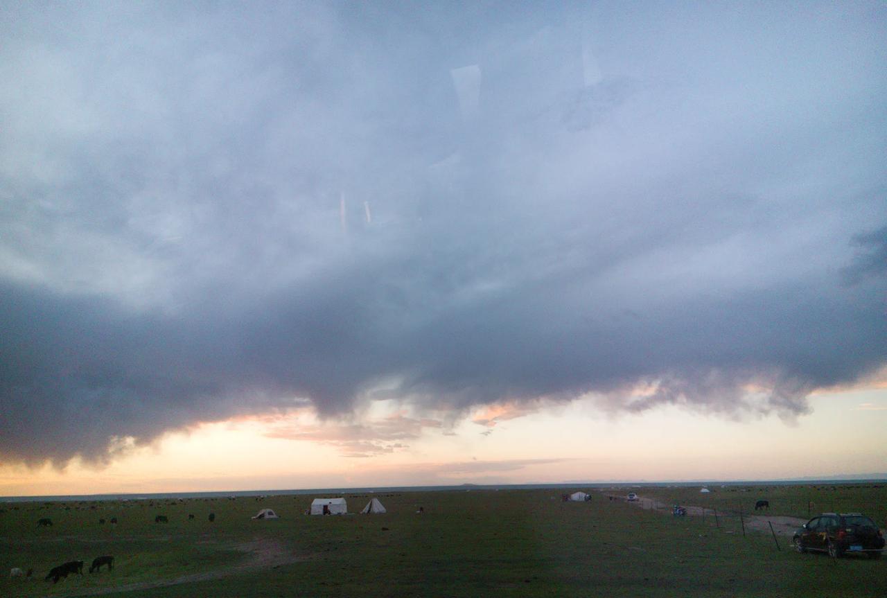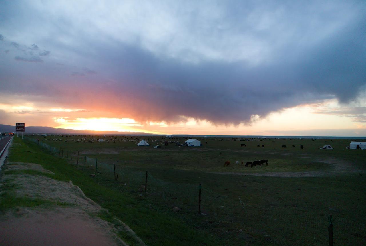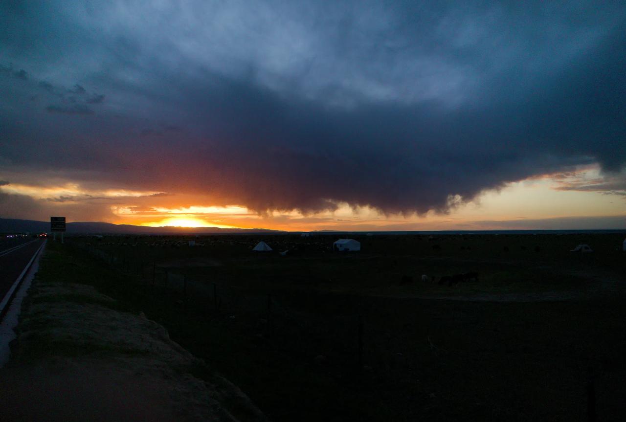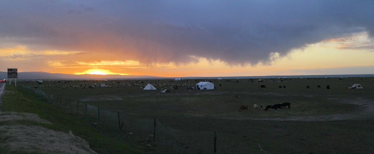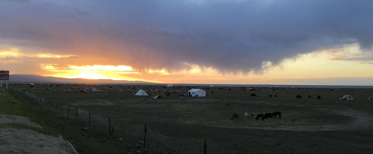 自驾小鹏X9出疆,第三站——青海湖! 想到已经错过了青海湖最美的季节,青海湖本来是在我下一次的旅行计划里。 但从格尔木到西宁,到青海湖时可以选择经过一段环湖公路,比直接走高速多花一个小时左右,同行小伙伴想多一个小时,但可以近距离提前体验一下青海湖,所以坚持去打卡看一下。 说实话,刚开始我是不太情愿的,觉得到西宁的时间太晚了,而且感觉快下雨了,毕竟,湖水的美丽与否,与天气因素相当大。 但同行小伙伴坚持,我也只有同去。 结果没有想到,青海湖给了我们一个大大的惊喜。 到青海湖时,没有下雨,正好遇上它的日落时分。 日落时分的青海湖,加上山雨欲来时的乌云压顶,两相映衬,居然美不胜收。 相机拍不出眼见日落时分那种壮丽绚烂的万分之一。 谢谢同行小伙伴给的一张构图比我好的美图。