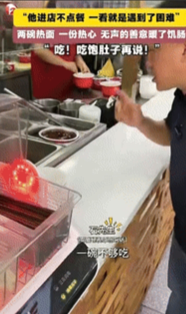 “活该他发财!”北京一男子进店后不点餐,老板察觉他遇到了困难,于是端了一碗面送给男子吃,并告诉他:“吃!吃饱肚子再说”,谁料,一碗面很快就见底了,老板得知他有2天没吃饭后的举动,让网友直呼:太暖心了!