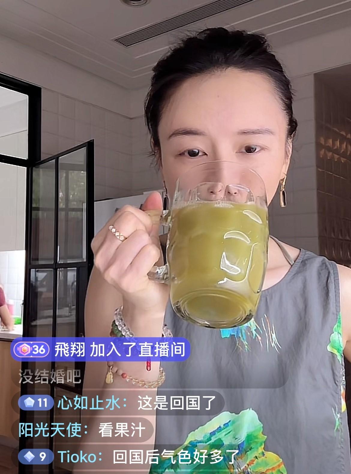 8月16日上午,影视演员张静初出现在直播间,打坐以后张静初给自己榨了一杯蔬菜汁,