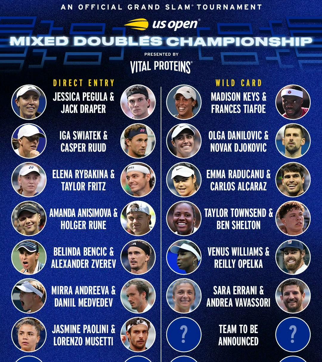 美网官推宣布,纳瓦罗、巴多萨以及保罗均退出今年的混双赛事,所以他们原定的搭档可以