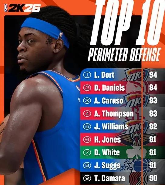 脏被认可了! 联盟掏蛋防守第一人[狗头] 雷霆多尔特登顶NBA2K26外线防守榜