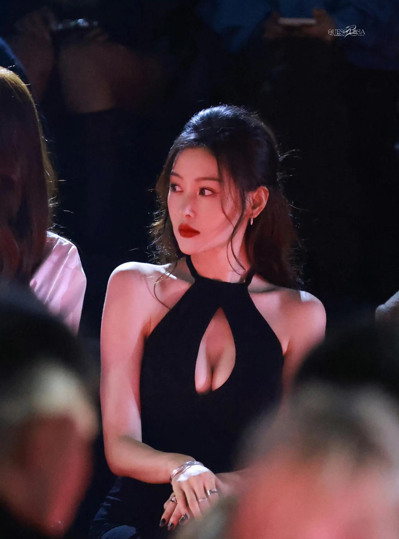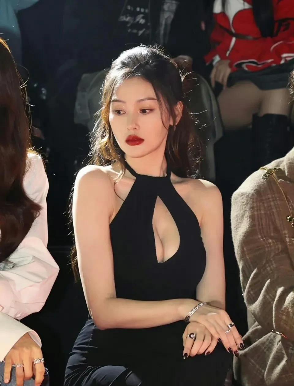 张天爱穿黑色挖空裙,皮肤白到发光,红唇配慵懒发丝,静坐都藏不住性感,这身材直接杀疯全场!