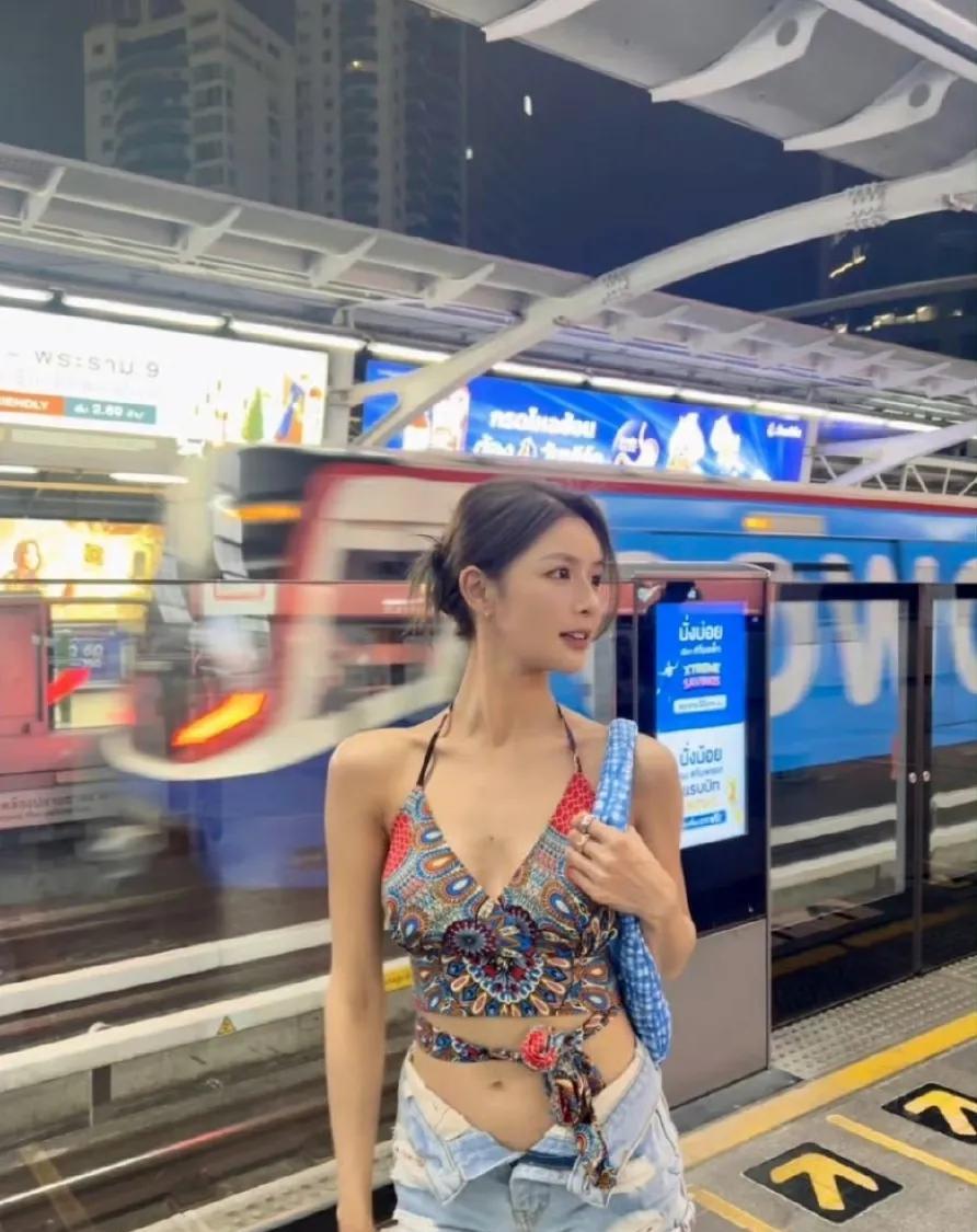 有的人这样穿, 肚子会duang一下掉出来, 但是蔡卓宜身材好,所以看起来还很养
