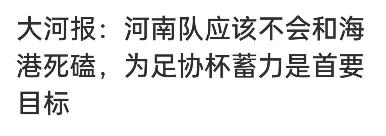 【河南“缴械投降”源于申花】 刚刚,海港在主场4-1大胜河南队。这也使得他们的联赛排名暂时登顶。 其实,这个结果也在意料之中。在今天早些时候,河南《大河报》就曾报道,河南队不会死磕海港,因为他们要留力足协杯(图2)。 纵观全场,结果印证预测。轮换首发的河南队在开场就早早“缴械投降”。 不过,对于积分榜第一暂时被夺的申花也怨不得别人。毕竟,是你们自己亲手让河南对足协杯有了想法。