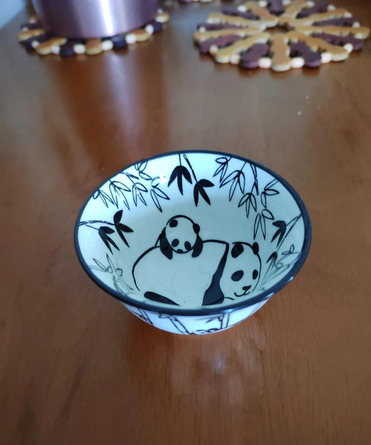 退休生活,五花八门,姿多彩!有人喜欢唱歌,有人喜欢跳舞,有人喜欢打小麻将,有人喜欢旅游…… 而我,不知道从什么时候起,喜欢上了,买盘子,买碗。 按说我这厨艺,也不怎么滴,准确的说,是铁丝穿豆腐,提不起来! 可大大小小的盘子,碗,碗橱里都搁不下了。 平时别看我买别的肉疼,但买起盘子碗,绝对下手快,够狠! 每每逛街,看到喜欢的盘子,碗,就爱不释手。这几年,自己没少往家里鼓捣! 我觉得,同样的一道菜,装在不同的盘子中,味道觉得不一样了,菜品也高大上了,视觉也有诗情画意了。 下面这几个带有熊猫图案的盘子,碗,是我平日逛生活馆时入手的。 这几个,大小不同的盘子,碗,不是一次购买的,是隔三差五去逛,看到了喜欢的就买了。 图一,图二,我用的最多,其余的,都被雪藏在碗橱里了。今天,我把他们召集在一起,开个会,集体亮亮相! 小老太太我,60岁了,还童心未泯!就喜欢熊猫图案的东西,包括毛绒玩具。 哈哈,人老心不老,活到99! 友友们,退休后,你有哪些业余爱好,一起聊聊呗! [微风][微风][微风][微风][微风][微风]