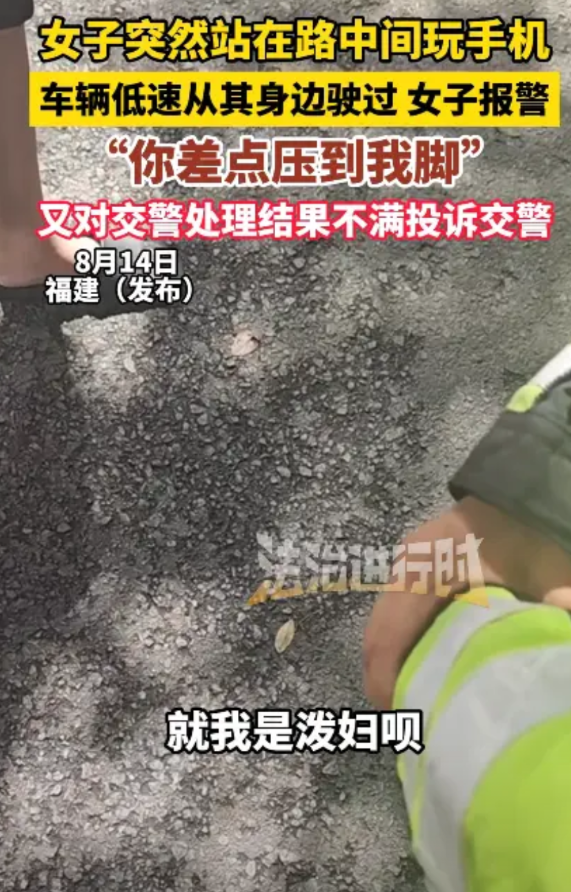 “丢人丢大了!”8月14日,福建福州,一男子开车正常行驶,前方女子突然停在马路中间玩手机,由于市区不能鸣笛,男子就将车速降到4km/h缓慢通行,女子愤怒的将男子拦下,说差点压到她的脚,自己被吓到了!随后女子报了警,交警了解后发现男子并无过错,女子又开始各种找交警的麻烦。网友:无理也要辩三分!