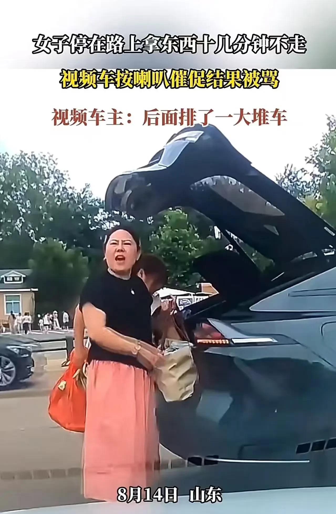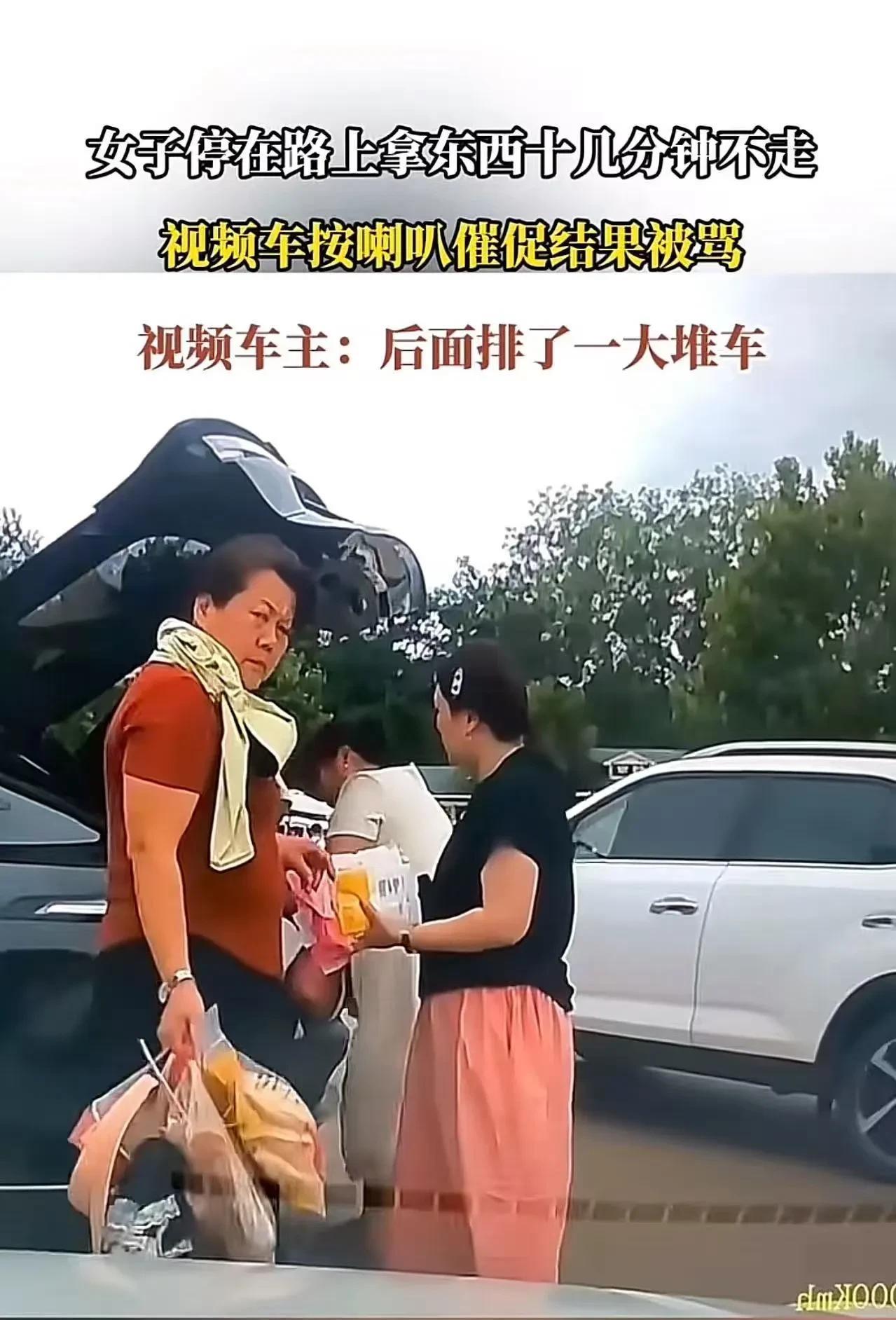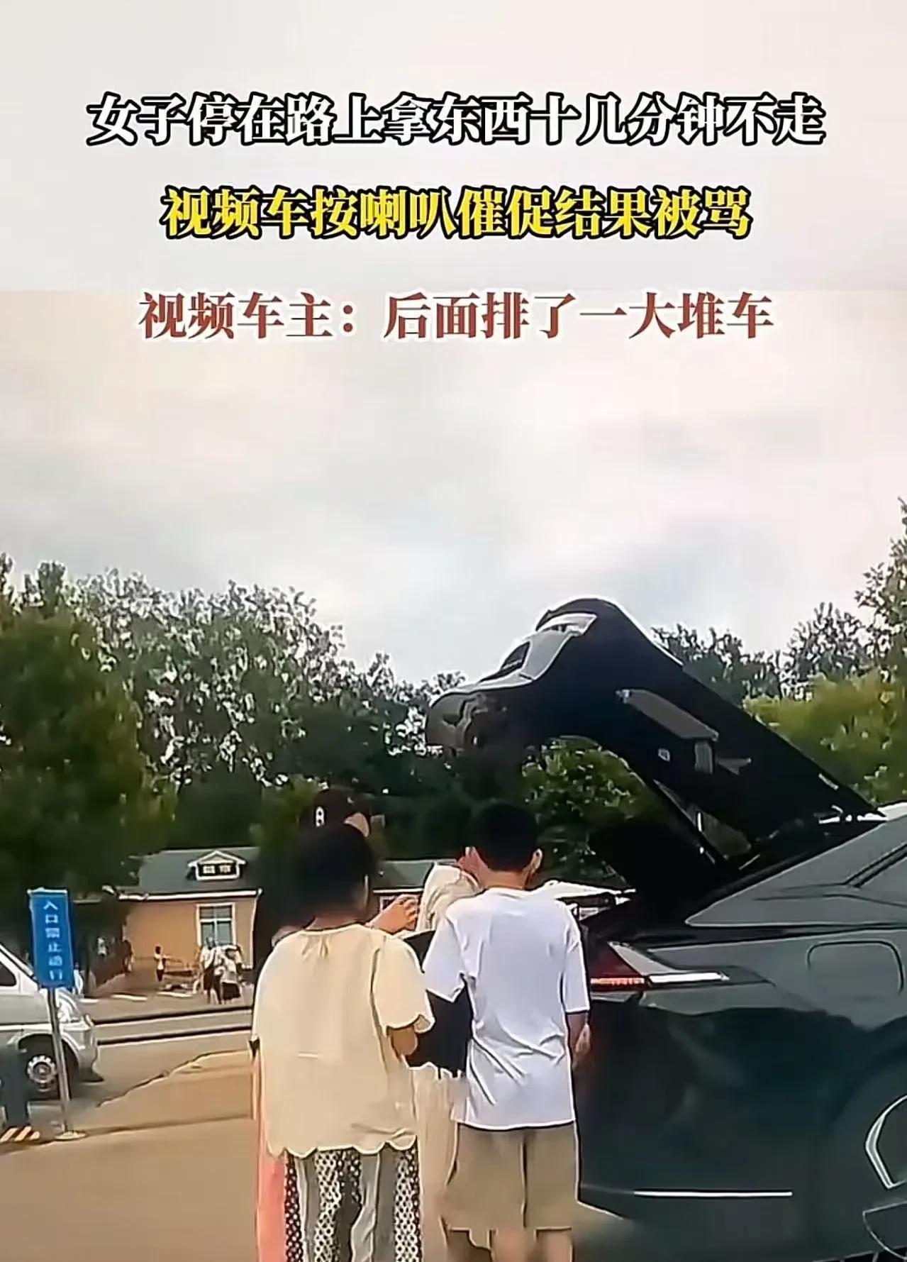 女子停在路上拿东西十几分钟不走,视频车按喇叭催促结果被骂。视频车主:后面排了一大堆车,把马路当自家客厅!网友:这一家子就是有一个懂点事的,也不至于这样! 女子把车停在路口,几个人下来搬后备箱里的东西。可是几个人折腾了十几分钟,一直没有弄好。 随着这辆车长时间地占据路口,后面的车辆很快排起了长龙。视频车等的不耐烦了,轻轻按了几下喇叭催促。 车上的一个老女人听到喇叭声后,猛地转过头,眼神如利刃一般,狠狠地瞪了视频车主一眼,仿佛视频车主按喇叭的行为是对她极大的冒犯。 紧接着,一个身材稍胖的年轻女子眼睛瞪得像铜铃一般,对着视频车便开始破口大骂。 堵路本就让人恼火,还敢这么嚣张骂人!视频车主气得浑身发抖。他觉得这种不讲道理、妨碍他人还蛮横无理的行为实在不能被容忍,于是将这段视频发到了网上,希望网友来评评理! 此事引发了热议,有网友说,如果是我,就下车,直接坐车前面,说我身体不好,本来是计划到医院看看的,让他一耽误,身体突然不舒服了,让他负责,不行就报警。他不尊重别人时间,那就把他拉下水,一起耗更多时间呗! 也有网友说,这些东西是怎么敢这么肆无忌惮的?一家人没一个好的,只能说有些人的恶是天生遗传的!哪天遇到个戾气重、活够了的人,让她们后悔一辈子! 还有网友说,说到底,就是法律不够硬气。这种就是寻讯滋事。直接就拘,你看以后有没有了? 【观点解析】 无论出于何种理由,停车都不能妨碍其他车辆正常通行。在公共场合,每个人都应该遵守基本的交通规则和社会公德。 那些为了自己一时方便而随意堵路,甚至在被人提醒后还恶语相向的人,暴露的不仅仅是他们缺乏规则意识,更是对他人权益的漠视和自身素质的低下。