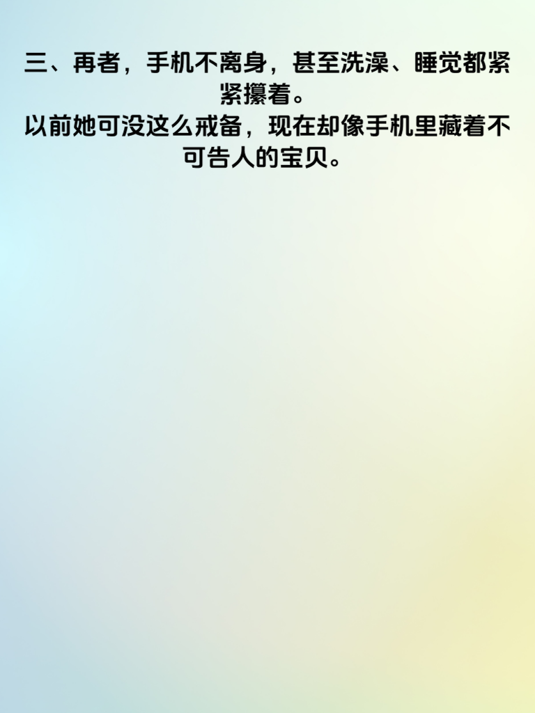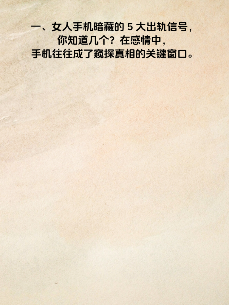 一、女人手机暗藏的5大出轨信号,你知道几个?在感情中,手机往往成了窥探真相的关键窗口。 二、首先,她突然开始频繁清理手机。聊天记录删得干干净净,相册也不再随意示人。这可能是她在为隐藏某些秘密做准备。 三、再者,手机不离身,甚至洗澡、睡觉都紧紧攥着。以前她可没这么戒备,现在却像手机里藏着不可告人的宝贝。 四、还有,接电话总是偷偷摸摸去角落,声音压得极低,生怕你听见。通话内容似乎变得格外神秘。 五、另外,社交软件的消息提示音总是关得死死的,回复信息也背着你。她好像在和另一个世界的人交流。 六、最后,手机密码频繁更换。原本简单的密码,如今变得复杂难猜。这背后或许藏着不想让你知道的事情。当你发现这些信号时,一定要冷静思考,是感情真的出了问题,还是另有隐情。但无论如何,坦诚的沟通才是解决问题的关键。