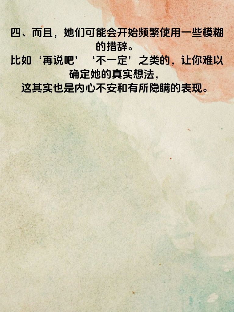 一、女人一旦出轨,聊天时往往会变得格外小心谨慎。她们会刻意回避一些敏感话题,比如两人之间的感情现状、未来规划等。以前可能会和你畅所欲言,现在却总是含糊其辞,让你摸不着头脑。 二、回复消息的速度也会发生明显变化。不再像以前那样及时,常常会拖延很久才回。或许是在和另一个人周旋,心思分散,顾不上及时给你回应了。 三、聊天内容变得敷衍。不再像过去那样充满热情和好奇,对于你的分享只是简单应付几句,不再深入交流彼此的喜怒哀乐。 四、而且,她们可能会开始频繁使用一些模糊的措辞。比如‘再说吧’‘不一定’之类的,让你难以确定她的真实想法,这其实也是内心不安和有所隐瞒的表现。 五、如果发现女人在聊天中有这些变化,一定要冷静思考。不要急于质问,而是细心观察更多细节,弄清楚背后的原因,再妥善处理感情中的问题。
