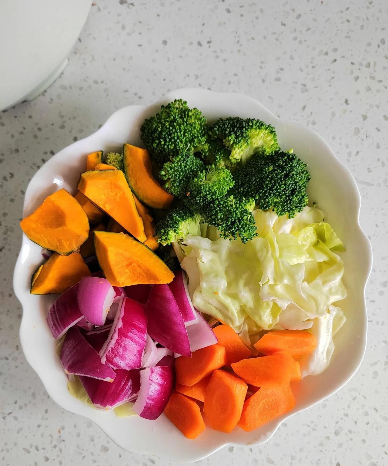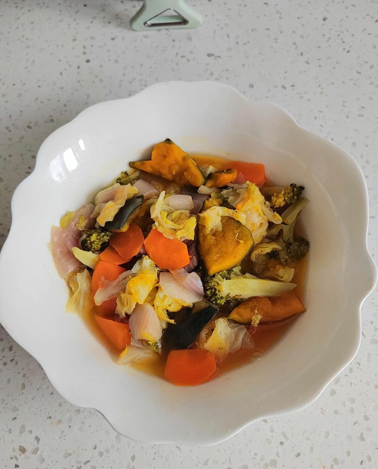 #晒出我的今日美食# 江湖中,传说的哈佛养生汤,今天小老太太我,终于鼓捣上了! 眼下立秋刚过,暑气未消,燥热依旧,养生正当时! 秋季喝养生汤,可谓好处多多!我特意上度娘上恶补了一下养生知识,说秋季喝养生汤,能很好的帮助身体,适应季节上的变化,可以调理脾胃,增强免疫力,帮助人们缓解余热未消,肺燥津伤等问题。 今天我做的是蔬菜养生汤,所需食材是胡萝卜,包心菜籽,圆葱,西兰花,南瓜。 把这5种菜,分别洗干净,控干水分份,放在锅里,一次性加入足量的水,大火烧开,小火慢煮,煮15~20分钟就可出锅了。 这款蔬菜汤,我没加任何调料,真正做到了原汁原味!也可根据个人的口味,加少许的盐,或几滴橄榄油。 出锅待菜半凉不凉时,再把它榨成汁儿,神奇的蔬菜汤就诞生了! 没有任何防腐剂,也不加任何调料,原汁原味儿的蔬菜汤,喝起来唇齿留香,香中还带有丝丝的甜味儿……保准你喝了这碗,还想喝! 好物分享,我替大家尝过了,这个真的可以有,一点儿都不难喝! 哦,对了,喝过之后,上瘾的,后果自负![大笑] [微风][微风][微风][微风][微风]