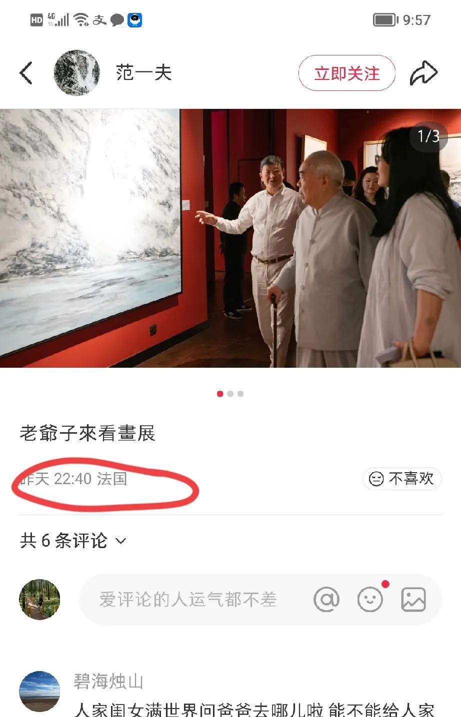 真服了。 亲生女儿满世界找父亲,原来范曾跟着娇妻跑到法国看继子的艺术展。 楠莉的儿子范一夫,昨天发了三张照片,说老爷子来看画展,地址显示在法国,徐萌也陪伴在侧。 这到底是玩儿的哪一出啊?人家亲生女儿联系不上父亲干着急,他们倒悠哉悠哉。[笑哭][笑哭]#范曾#