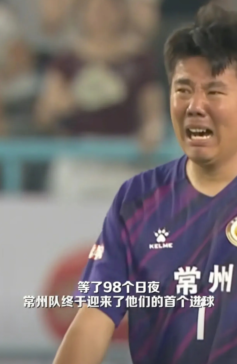 常州队守门员顾志强,八场比赛丢了十八个球,他没哭,被盐城进了五个球,他也没哭,但今天常州队进了一球,赢下了这场比赛,顾志强哭的可伤心了。