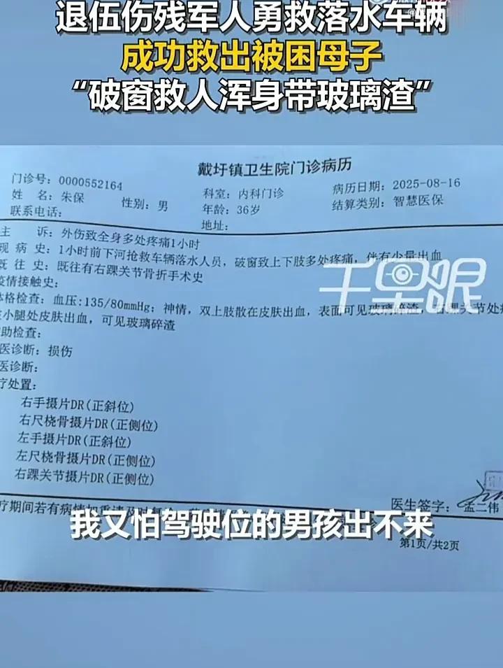 这绝对是救命之恩!8月16日,江苏徐州邳州一辆小车不慎坠河,车上母子二人苦苦挣扎,这时一位退伍伤残军人见状,立即跳下水去营救母子,破开窗户将母子二人从车里拉出,但自己身上却有多处被玻璃渣划伤。