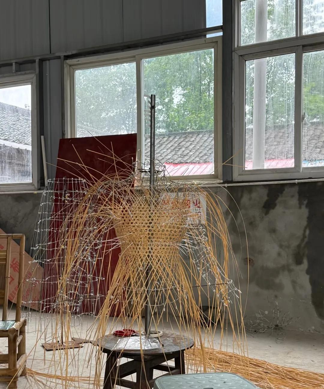 真正编织肯定不是如照片里那样编的,肯定是先做一个模型,把铁丝围绕模型缠绕,然后用竹片编织,那样的话只需要农村阿婆都会做,