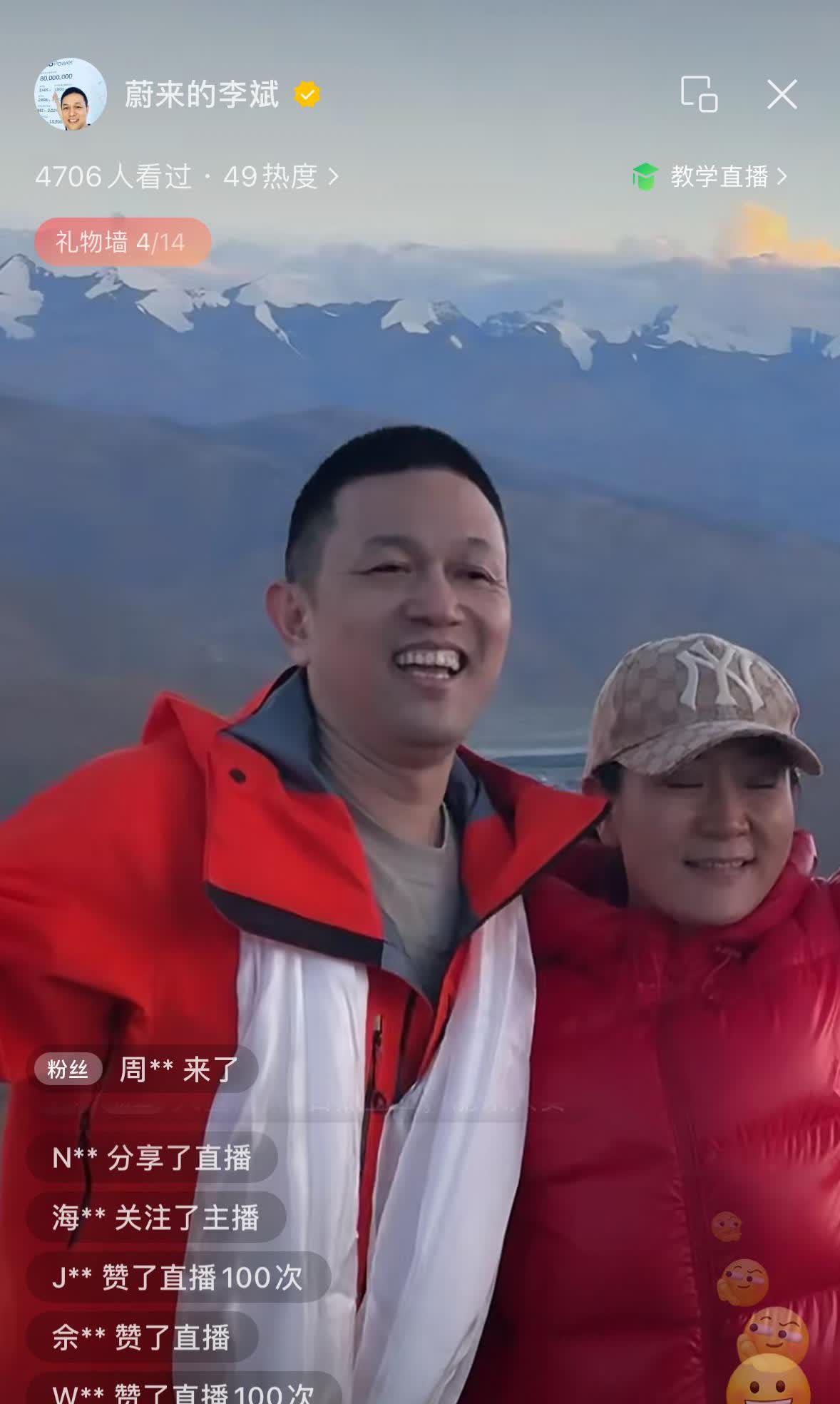截了几张斌哥正在直播的图片 开心也是开心,可以看见日照金山 高反也是真的要高反~ 蔚来换电站是真的不容易,这原本就是一场伟大的“战役”。【来自懂车帝车友圈】