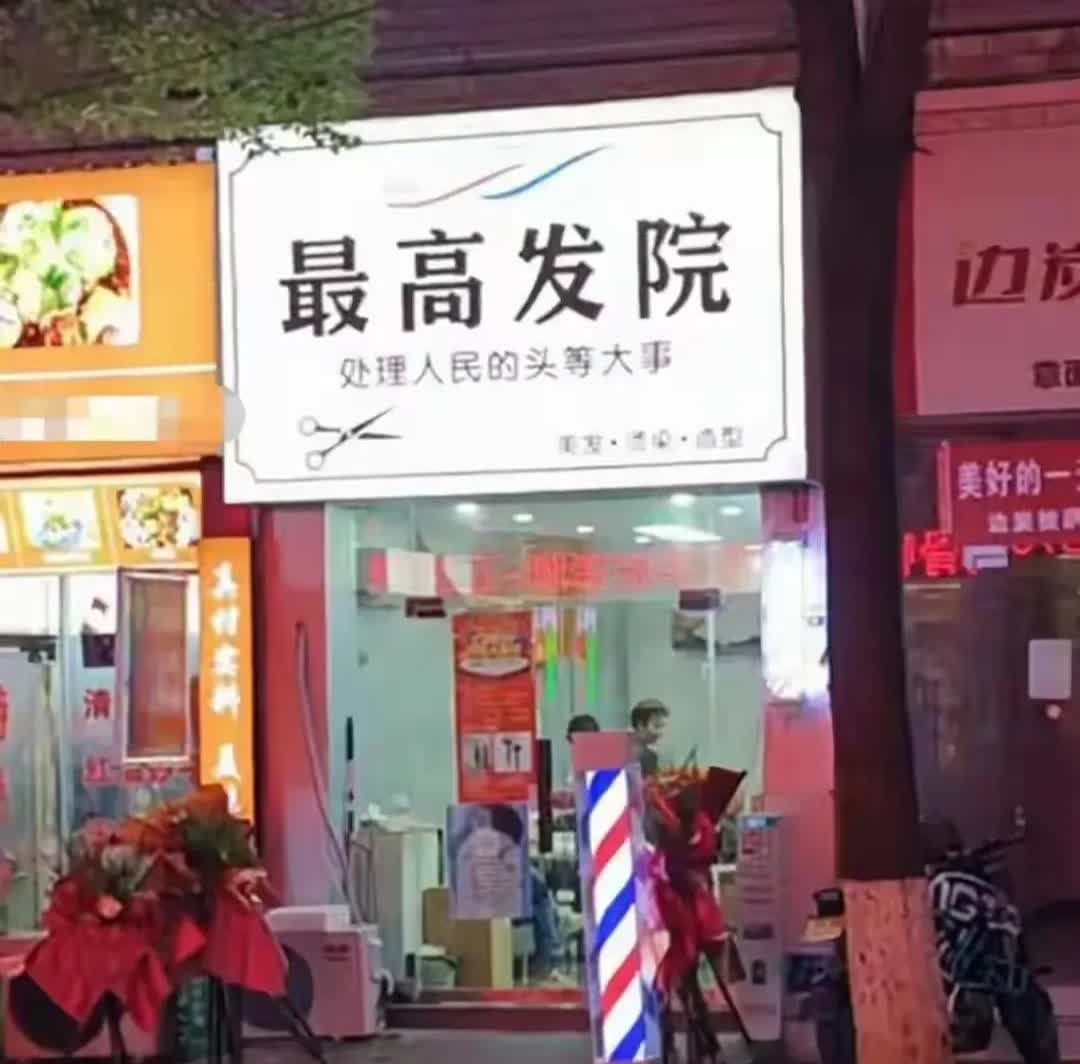 “胆子太大了” 贵州仁怀,有一名男子晚上下班回家,经过一家店铺门口的时候,看到这家新开张的店铺招牌上写着:最高发院,下面还有一项小字写着:处理人们的头等大事。 这名男子看到之后,被美发店老板的创意所惊讶到了。他认为,美发店老板给店铺起这样的名字,确实非常有创意,但是却涉嫌蹭法院的名气来给店里拉流量,这样的做法可能非常不妥。 随后男子拿出手机对着美发店的招牌拍了一张照片,随后把照片发到了网上,吐槽这家店铺用这样的招牌。 对于很多做生意的老板来说,给店铺起一个好的名字,对于店铺的生意会起到一个很好的增值作用。但有些老板挖空心思,想出了很多人觉得很奇怪的名字,比如说做美发的有飞发走丝,做早餐店起名今日油条等等,令人眼花缭乱,印象深刻。 那么你们觉得,这家美发店能用这块招牌吗?