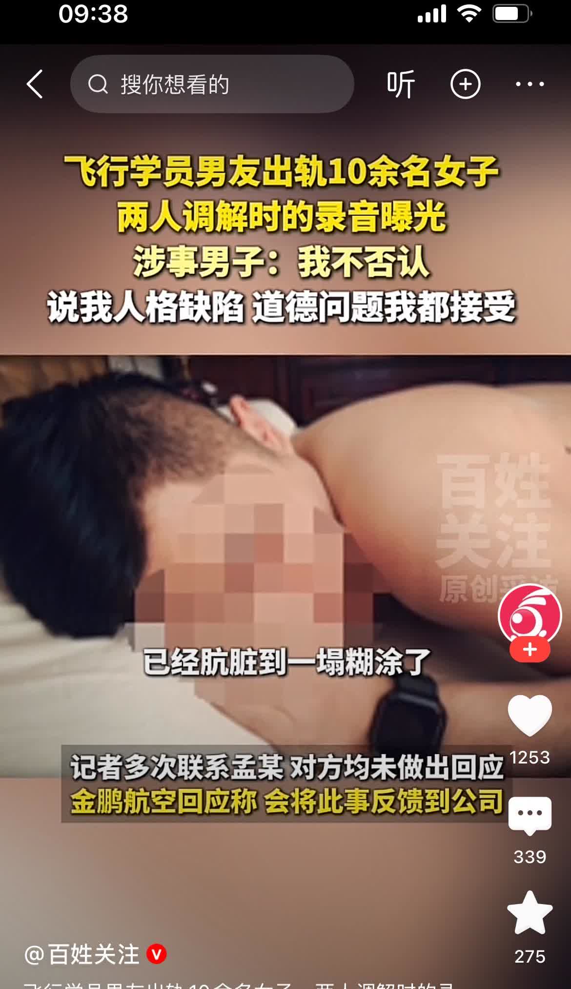 你到底跟多少个女人睡过? 我为什么要去数啊,这只是一个数量问题…… 最新大瓜爆料! 金鹏航空飞行学员孟某被女友邬女士以49页PPT举报, 指控其恋爱期间与10余名女子保持不正当关系。 两人调解时的录音曝光, 涉事男子孟某说 “我不否认,说我人格缺陷、道德问题我都接受”。 曝光的聊天记录里有“又想你了”“越看你头像越想”等暧昧内容, 邬女士还以6点为契机对孟某进行控诉及起诉,事件细节与相关音视频,让这场情感纠纷的更多面向得以展现。 不过不得不说,曝光出轨也得有文化。 将近五十页的ppt,如此条理清晰,说明做足了功课,真是想狠狠的呵呵男人一锤呀。 其实,女子也是极端了,遇人不淑,及时止损就好了,反复问“我为什么遇到的人都是这样的”,也只能说什么的人吸引什么样的人罢了。你们觉得呢?