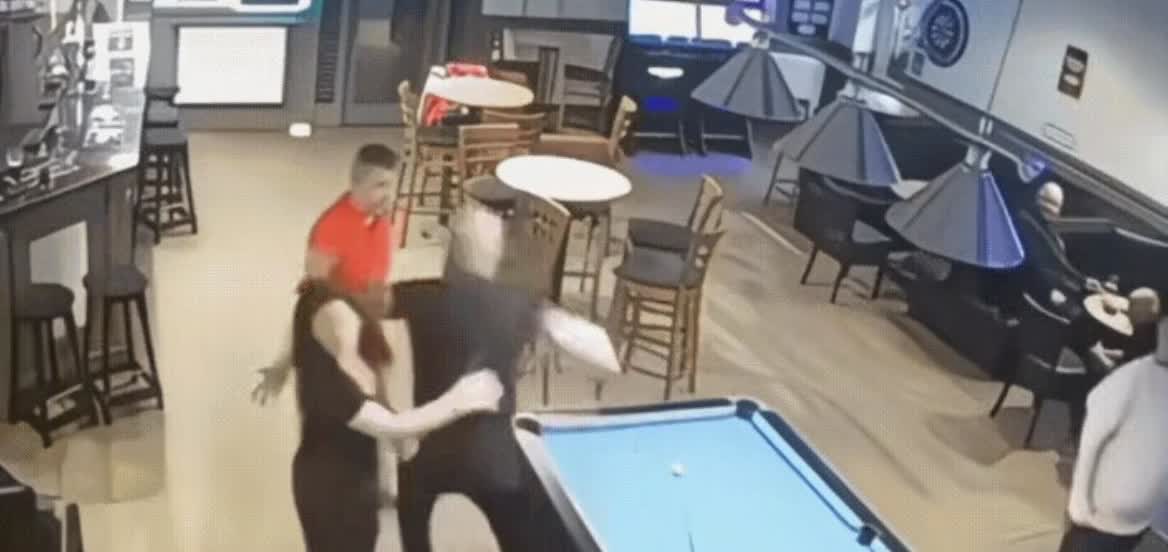重拳出击,击倒色狼!外国一位橙衣男子来到台球桌打球,刚好里面有一位身材相当哇塞的美女,这位男子立刻脑子一热,靠近其身旁伸手乱摸了起来。万万没有想到大明女子的丈夫就在里面,看到这一幕顿时火气上头,对该名男子一记勾拳打倒在地,可能这一拳威力太大了。直接晕了过去。 对此论坛友人说到:细看红衣者是一片好心怕那女子撞到台角上反被挨打,吹,去那讲理呀,管好自己,事不关已高高挂起,爱心不要轻易付出。 痛是痛了点,赚还是赚了的,没二十万不签谅解书。 这下好了,一个进医院,一个进法院。 观众老爷们你们有什么看法?