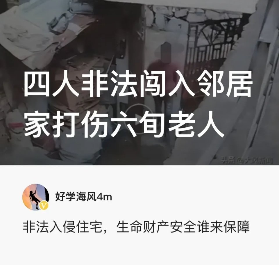 在此之后,张家对彭家的怨恨,不减反增。俩家就一墙之隔,平时生活中不仅有磕磕碰碰,而张家向彭家扔砖头、炮仗、避孕套,都成了司空见惯的事情。 2022年,两家人因为铺地砖又起了冲突,甚至闹到了法院。一年到头,单数报警的次数,一家就多达4-5次。 彭大爷与老伴儿本着“息事宁人”的态度,多年来一直忍气吞声,因怕给儿女添麻烦,也尽量不告诉儿女这些糟心事。即便如此,彭大爷到底还是没躲过这一遭。 最终,经过司法鉴定,彭大爷鼻骨骨折、闭合性颅脑损伤,构成轻微伤。打人的张某,因非法侵入住宅,被行政拘留15日,并处罚款500元。 对于该案件,网友们纷纷表示,“如果3个人进去拉架,为什么要损坏监控?”、“不能听一面之词”、“你们不惹人家,人家会无故去你家打人?这听起来也太有点不合情理了吧”、“处罚适度是关键,只要当事一方不服就会留下严重隐患”。邻里之间的积怨纠纷,确实不能只听一家之言。 那么,仅就此案件而言,张某的行为该如何定性呢?