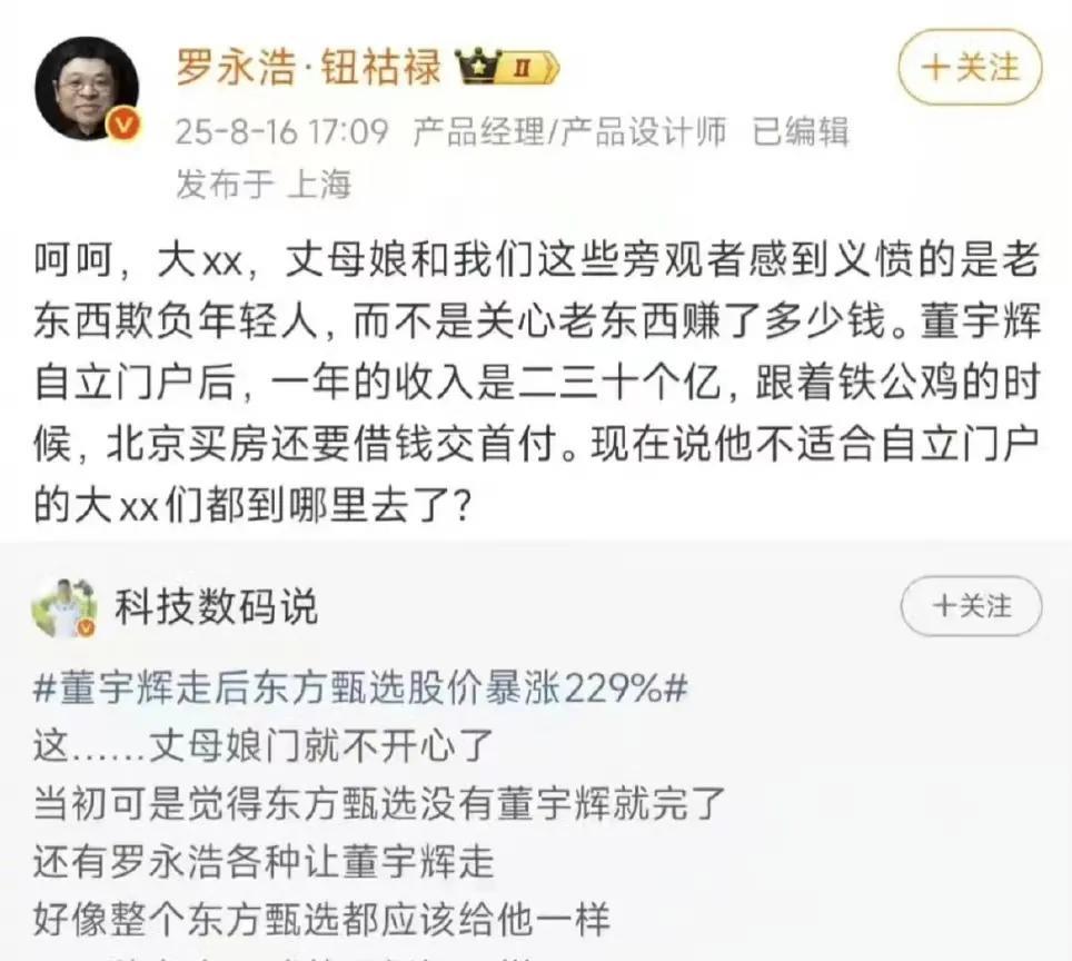 罗永浩曝董宇辉年收入20亿,看着在帮董宇辉向老俞出气,其实把他架到了火上烤。单飞