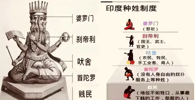 来看看现今印度种族的现状。 ● 婆罗门:约占印度总人口的5% - 10%。 ● 刹帝利:约占印度总人口的10% - 15%。 ● 吠舍:约占印度总人口的20% - 25%。 ● 首陀罗:约占印度总人口的40% - 50%。 ● 达利特:约占印度总人口的16% - 17%。