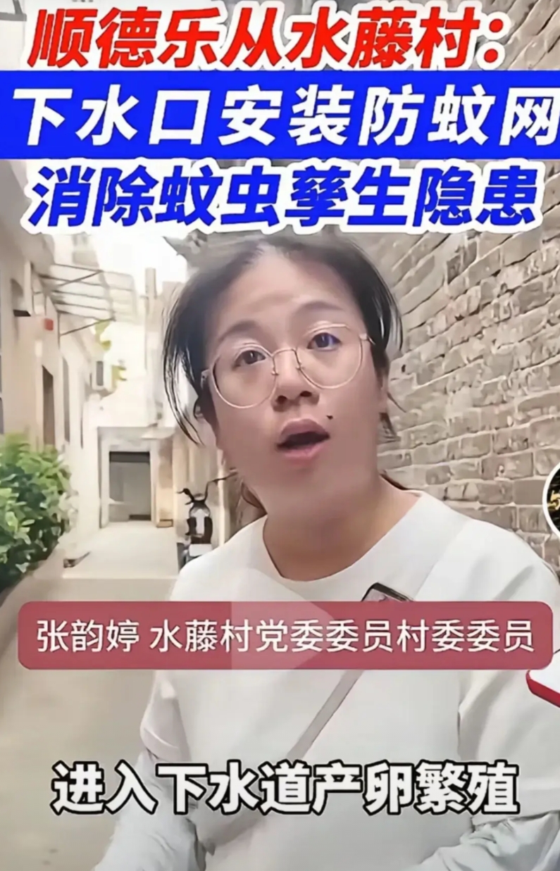 佛山顺德乡村街道正在推广给下水道入口贴防蚊网,这个阿姨讲起防蚊经验,一脸的智慧: