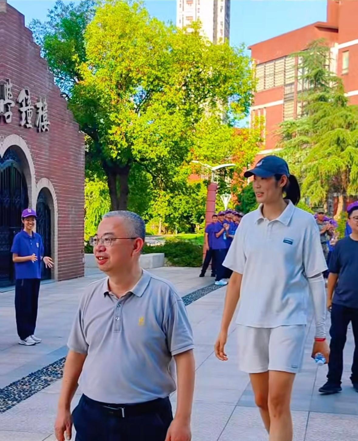 新鲜出炉的朱婷!今天,朱婷带着家人闪现江苏锡山高级中学参加活动!朱婷扎着马尾辫,戴着鸭舌帽,出现在高中校园里,跟朱婷一起的是不是朱婷的姐姐啊,跟朱婷长得好像啊,高中校园里看到学生正在军训,是不是姐姐家的孩子在这所高中军训啊,朱婷跟姐姐一块去高中校园里看外甥女,然后被发现了,走进校园,然后还跟外甥女班级的同学进行了合影!有一个这样优秀的姨姨,很骄傲啊!