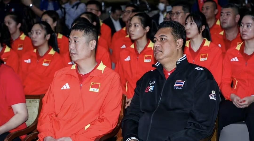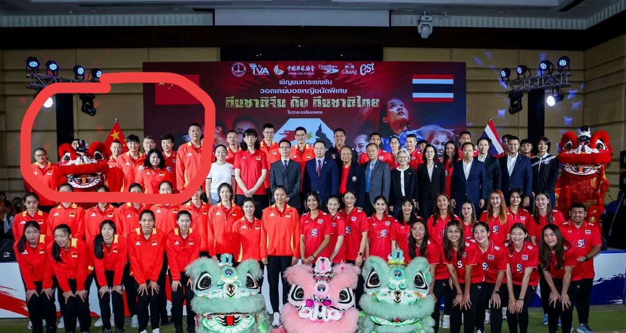 认真聆听领导讲话的中国女排姑娘们!中泰女排一家亲,这友谊赛赛前发布会阵仗可是真大!证明泰国女排真的足够重视中国女排和泰国女排的这场热身赛!冯坤看到了娘家人中国女排来泰国了,拍大合照的时候直接站到了我们中国女排这边!中国女排的队长龚翔宇和泰国女排队长阿耶查拉蓬占据C位!这场友谊赛正好中国女排可以提前练练兵,看看高意能不能首发,还有李盈莹的恢复情况咋样?