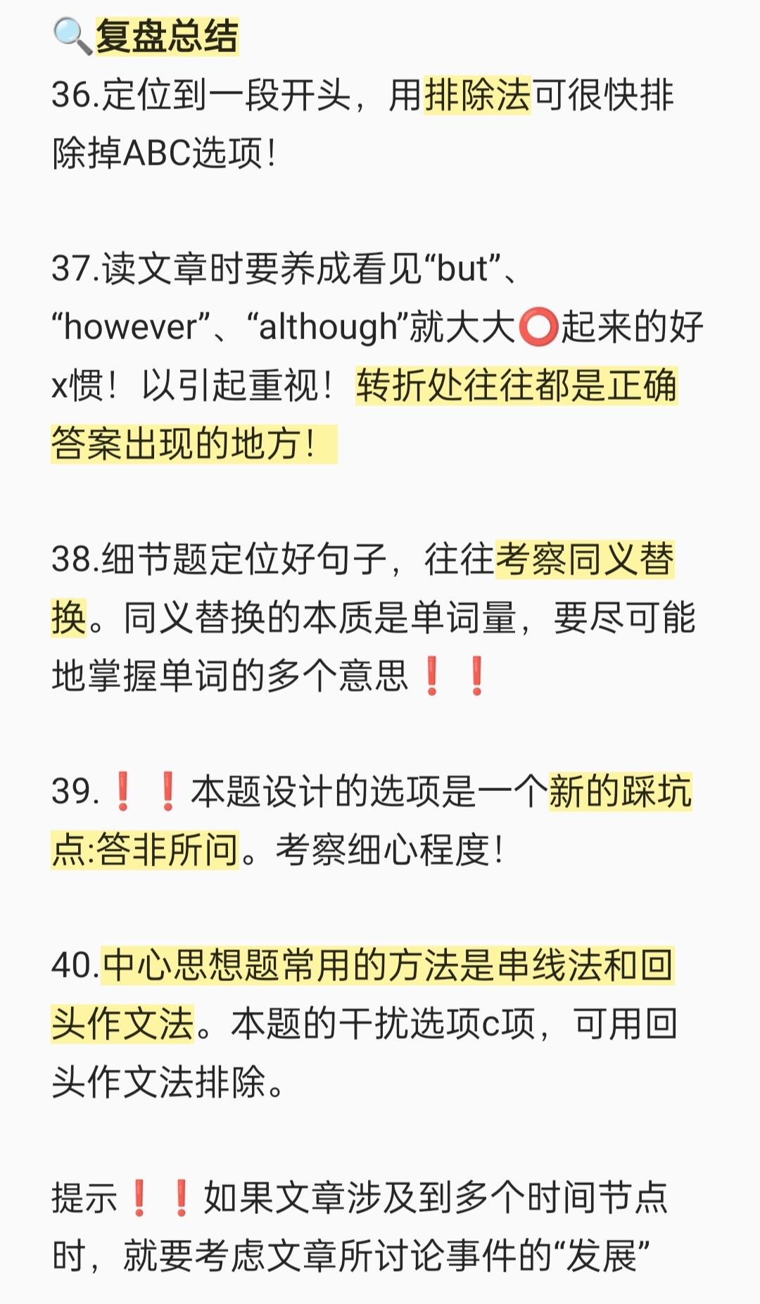 37.读文章时要养成看见“but”、“however”、“although”就大大⭕起来的好x惯!以引起重视!转折处往往都是正确答案出现的地方!