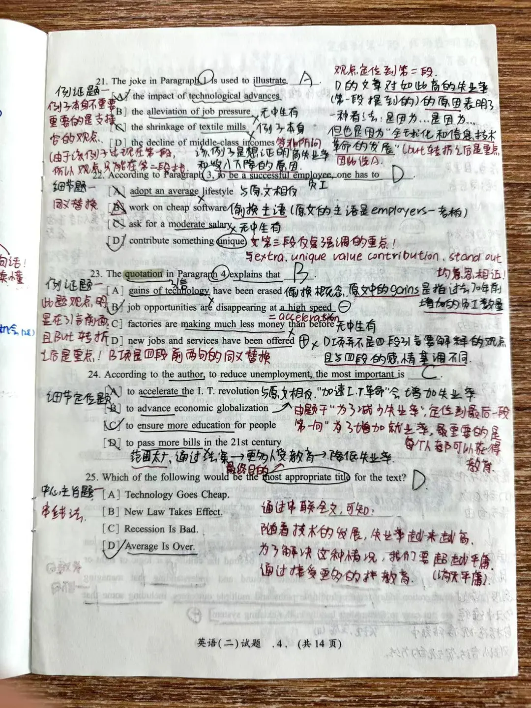 25.通过串线法秒选D项。且D选项在文中正话反说、反话正说,反复强调!