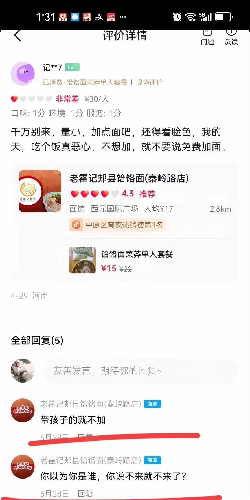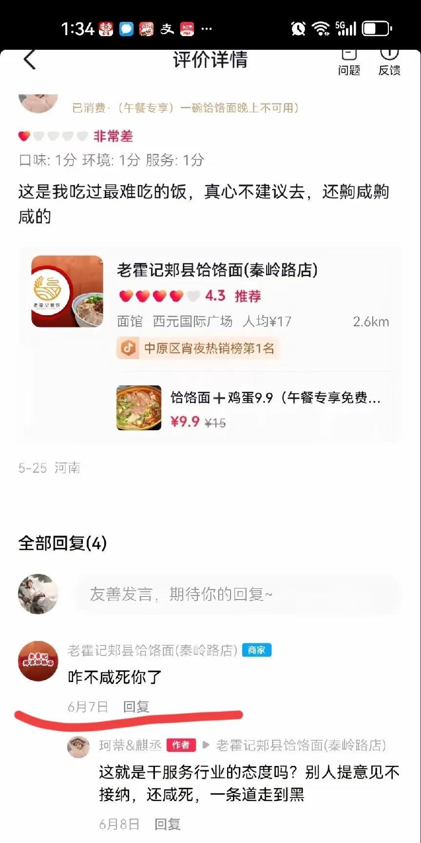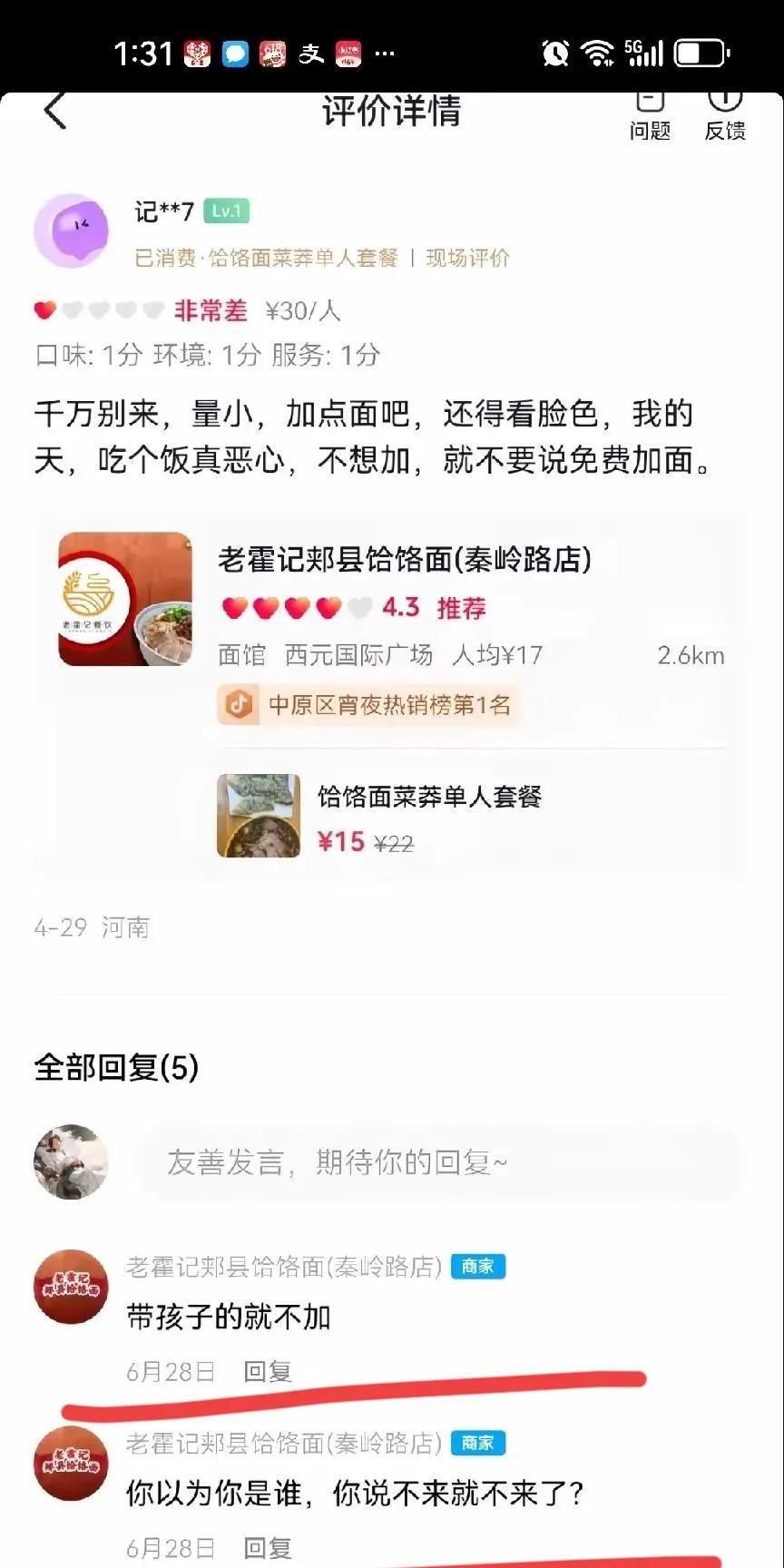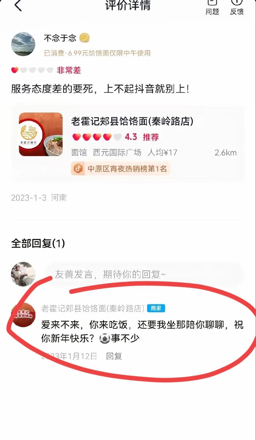 这个卖面的人品不咋地啊! 都说和气生财, 我不知道这老板为什么这么凶?