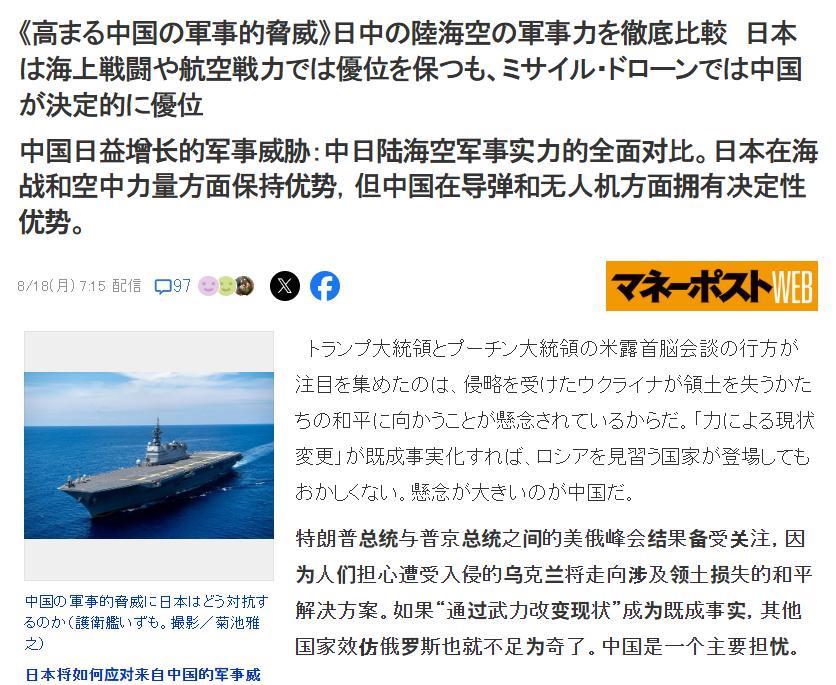 【日本军方对华战略误判闹笑话,自卫队质量优势神话破灭,解放军导弹无人机锁死西太】 日本媒体近期抛出的中日军力对比报告引发热议,文中竟宣称自卫队凭借“质量优势”可抵消解放军数量优势。这种无视现实的战略幻想,暴露了日本对东亚军事格局的严重误判。 报告承认解放军在规模上的碾压性优势:陆军兵力是日本陆自的8倍,海军舰艇数量达5倍,作战飞机更是9倍之多。但日方强行用“质量优势”自圆其说,吹嘘“苍龙”级潜艇“世界第一”,空自飞行员“练度超解放军”。 日本的战略误判源于三重认知偏差:历史叙事扭曲导致的精神胜利法,将二战终结归因于原子弹而非中国抗战;技术认知滞后于现实,沉迷精密制造神话无法接受中国领跑;对美军事依赖产生的虚幻安全感,忘记自身连弹道导弹都无法自主研发。 当前西太平洋的军事平衡早已重塑:解放军火箭军的东风快递可在7分钟内摧毁那霸基地,无人机蜂群能瘫痪自卫队指挥系统。日本与其沉迷“质量优势”的自我催眠,不如正视现实。在绝对实力差距面前,任何战术投机都是徒劳。中国的战略克制从不等于软弱,惹翻老实人,后果很严重。