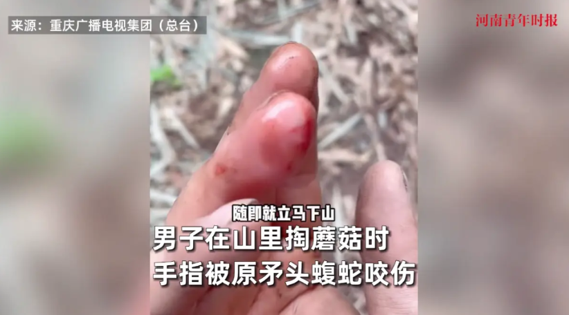 怕啥来啥!四川自贡,一男子去竹林里采蘑菇,刚伸手拨开洞口,就被一条大蛇咬住了手指。等他看清楚时,鲜血已经往外冒,他一眼就认出是毒性极强的原矛头蝮,虽然立刻去了医院,可最坏的结果仍然是截肢!