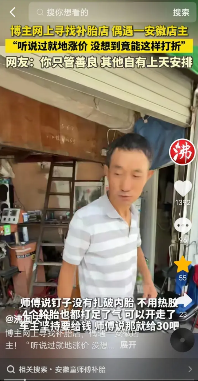 师傅的实在太难得了——明明可以按原先说好的50块钱收,甚至悄悄不说明情况也能收钱,他不仅主动说内胎没破,还主动降到30,这份坦诚真的很打动人。 尤其师傅家里三个孩子负担不轻,还有一个孩子正在读书,生活压力肯定不小,这种情况下还能守住本心,更显得珍贵。