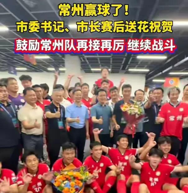 历经九轮煎熬,常州队终于赢球了,书记市长亲临现场送花褒奖,常州市民载歌载舞犹如过