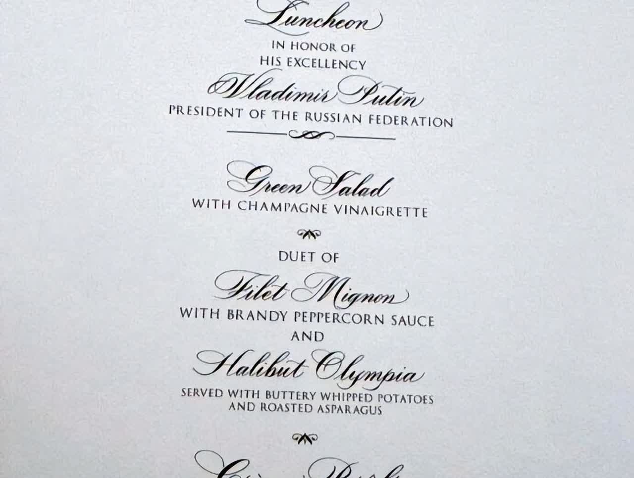 特朗普不留普京吃午饭,果然没那么简单,美俄峰会真的谈崩了? 本来安排了足足 7 个小时的会谈,结果还没到 3 小时就结束了,算下来才 2 小时 45 分钟,就这么匆匆结束了。之前特意准备的午宴也临时取消了 —— 菜单上的菲力牛排、比目鱼全都白准备了,就连专门给俄罗斯宾客标了发音的座位图,也只能对着空座位没用了。 在外交场合,这种情况真的很少见,差不多就等于说两边连最基本的交流都很难进行下去了。说到底还是因为:美国一直要求俄罗斯从乌克兰东部撤军,可俄罗斯这边一点不让步,反而要求北约承认他们对乌东四个州的控制,还得停止北约东扩。两边立场完全对着干,谁也不肯退一步,会谈自然就僵住了。 而且从形式上看,这次会谈也是全面降级了:原本计划的 “一对一” 闭门交流,改成了双方各带两名官员的 “三对三” 会谈;最后别说发表联合声明了,连任何象征性的协议都没有达成。简短的发布会结束后,普京就直接离开了。这么冷清的收场,不少媒体都觉得这就像一份 “外交判决书”,标志着美俄关系又一次跌到了谷底。