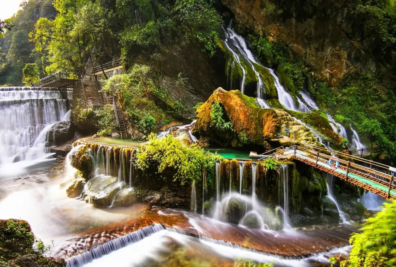 炎热的夏季,每个人都会选择去清凉的地方。重庆高铁可直达有着17度夏天的地方,那里有高山、湖泊与温泉,还有瀑布和火把节,趁着现在人少,赶紧出发吧。螺髻山景区就像17度的天然空调,漫山遍野都是原始森林,高山景色丰富,随手一拍就是大片,小众又高级,发朋友圈都发不完。 从主城出发,高铁加自驾的方式很方便,来一场说走就走的清凉之旅。白天徒步,傍晚看夕阳西下,晚上住在特色民宿听山风。还能参加热闹的火把节,领略地道的彝族风情。 四川凉山彝族自治州普格县距离西昌县城42公里,这里的螺髻山是国家4A景区,主峰高达4359米。螺髻山的游人比较少,你能够尽情欣赏古朴、险峻、优美的绝美风光,感受大自然的魅力。 登山全程10公里,累计爬升1100米,徒步大概需要8小时,这需要较好的体能和耐力,而且存在一定风险,请游客根据自身情况而行。特别提示,患有心脏病、高血压、恐高症、基础疾病的患者以及孕妇、残疾人、老人等特殊人群禁止参与。 观赏海子,畅游螺髻山。这里翠绿与深蓝交织的景色充满魅力与静谧,让人心旷神怡、流连忘返。 还有九十九里温泉,泉水从悬崖上飞泻而下,形成壮观的温泉瀑布群。 这里还有彝族最盛大的狂欢——火把节。“清凉螺髻”民谣露营音乐会在周五、周六的20点,地点是游客中心。