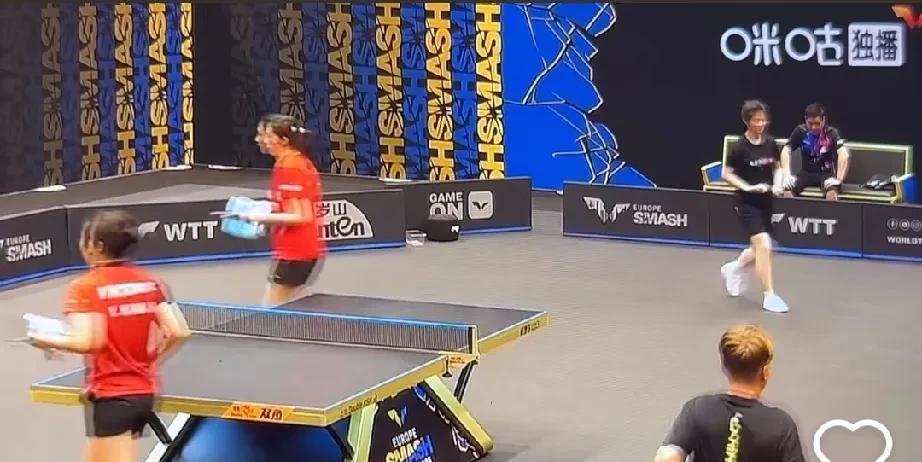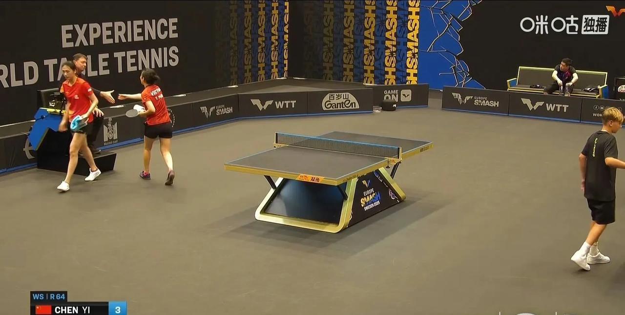 恭喜陈熠3-0战胜韩莹。 今天女单1/32决赛,陈熠的场外是邱贻可,一会儿莎莎的比赛场外是马琳。确实这个新球不太好削啊,看着很重,打比赛时候韩莹还看着她的球拍说,这球怎么不转呢,看来这个球真的限制削球。难怪之前在资格赛的时候男队汪洋首轮出局吐槽这个新球更重,不转,真的应该统一球和球桌,这样简直是折腾运动员。 看了今天陈熠和韩莹的比赛,大家说明天看来钱天一对桥本也有机会赢,这个球不好削啊。那天一加油哦!