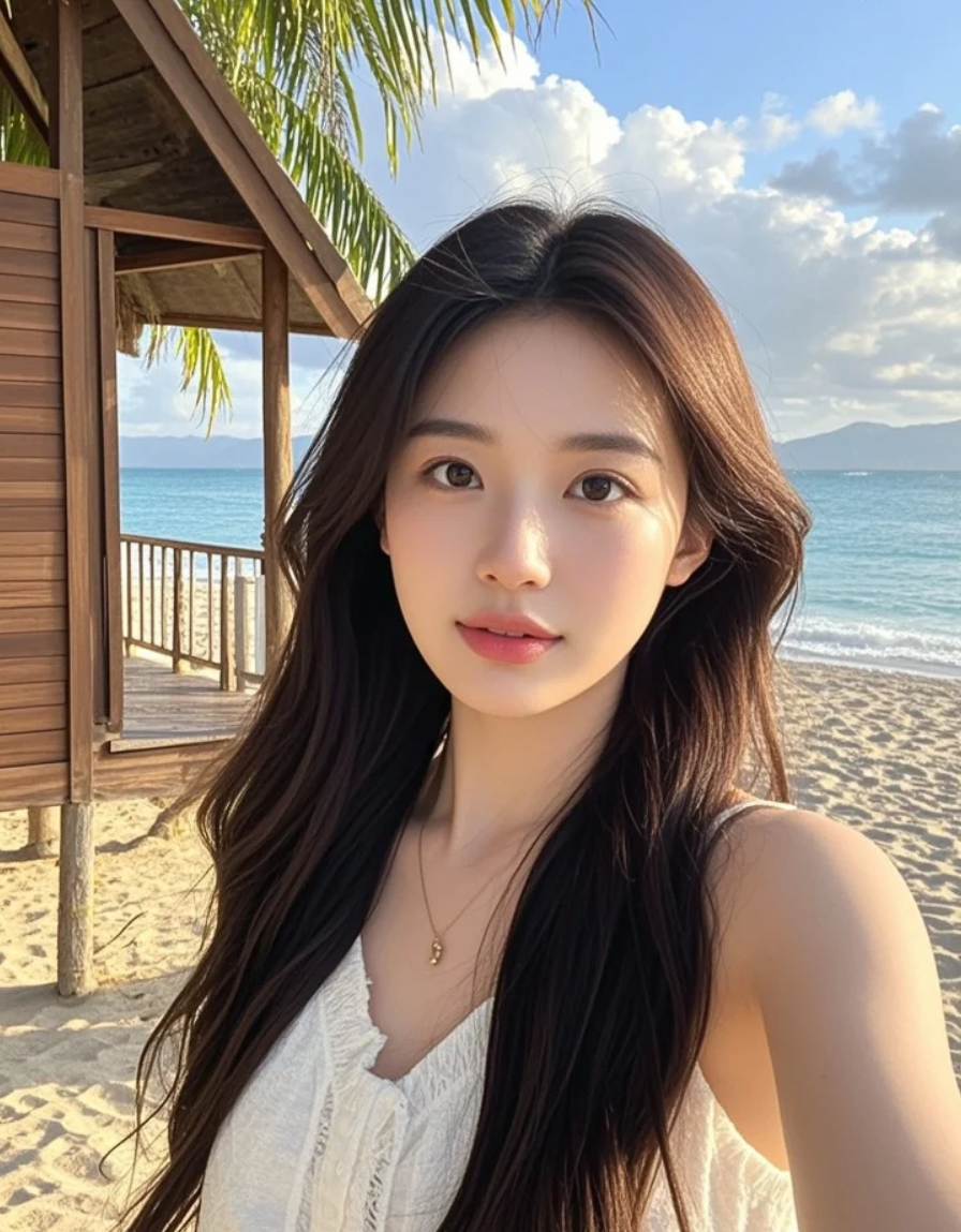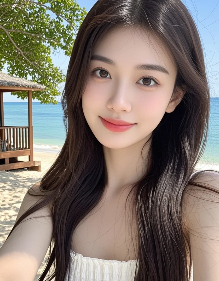 白皙肌肤映着蓝海,我是不是美得有点犯规?