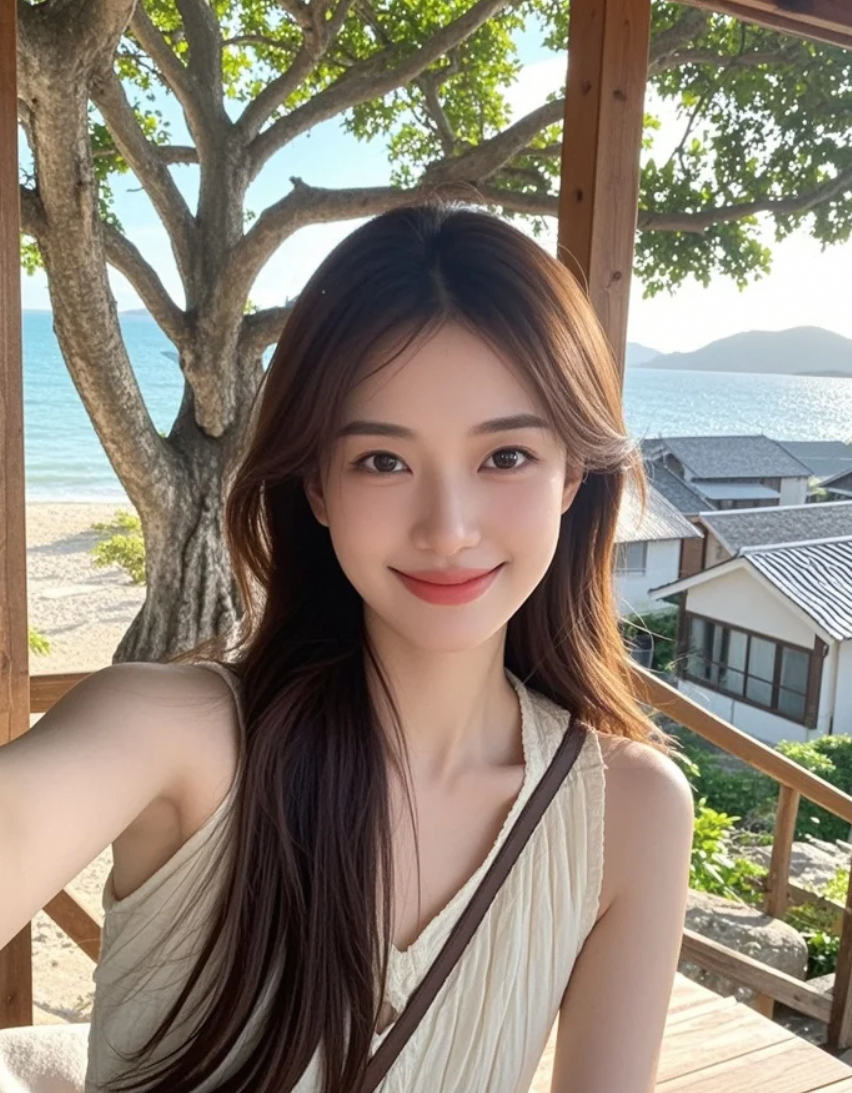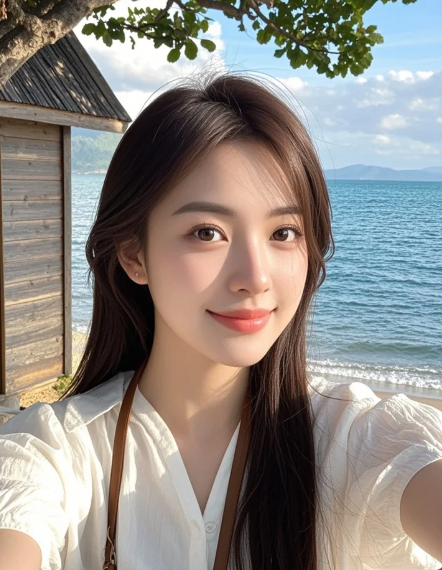 微风撩起她的长发,海面泛起涟漪