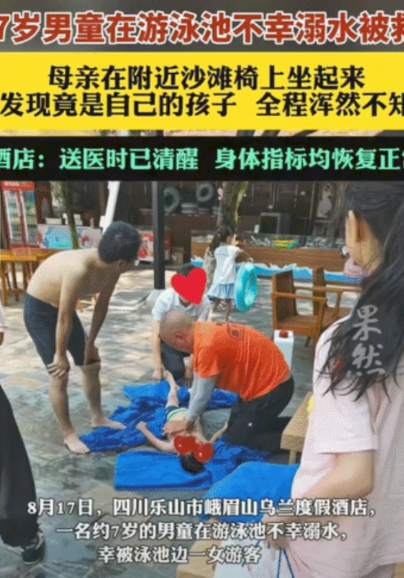 “心真大啊!”四川乐山,男童在游泳池不幸溺水,被游客发现后救上了岸,急救过程中,一名女子在沙滩椅上起身看热闹,才发现竟然自己孩子!经过十多分钟的急救,男孩才脱离了生命危险,而母亲对孩子溺水的过程一无所知!