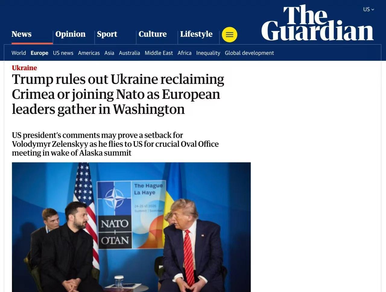 俄乌交火,双方都是不怕死的。俄美正在紧盯欧洲会怎么办!俄乌血战三年半,都是不怕死,拼命互相捅刀子。 这一次,泽连斯基飞往华盛顿,与特朗普进行谈判。欧洲方面害怕,特朗普+万斯欺负泽连斯基,欧洲政要集体出动,一起到美国参会。 北约秘书长吕特,德国总理弗里德里希·默茨,英国首相基尔·斯塔默,欧盟委员会主席乌尔苏拉·冯德莱恩。还有,芬兰总统亚历山大·斯图布,意大利总理乔治亚·梅洛尼,法国总统埃马纽埃尔·马克龙破天荒的一起飞往华盛顿。 支持乌克兰联盟(再次强调,准备在俄乌停止战斗后,在乌克兰部署武装力量部并协助确保乌克兰的空中和海上安全,恢复乌克兰武装力量。 美国已经定了基调,泽连斯基到了华盛顿,不会有红毯欢迎。莫斯科愿意在乌克兰五个地区做出让步,美国的最佳方案是“全面和平协议”,而非临时停火。 乌克兰不要企图挑战俄罗斯,俄罗斯是世界上最重要的大国之一,俄罗斯还有强大的核武器。美国的要求是,达成俄乌停火协议的唯一途径是妥协,各方都有所得有所付出。特别是乌克兰必须做出妥协!
